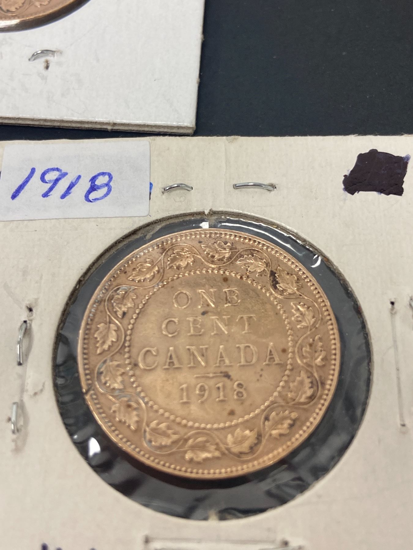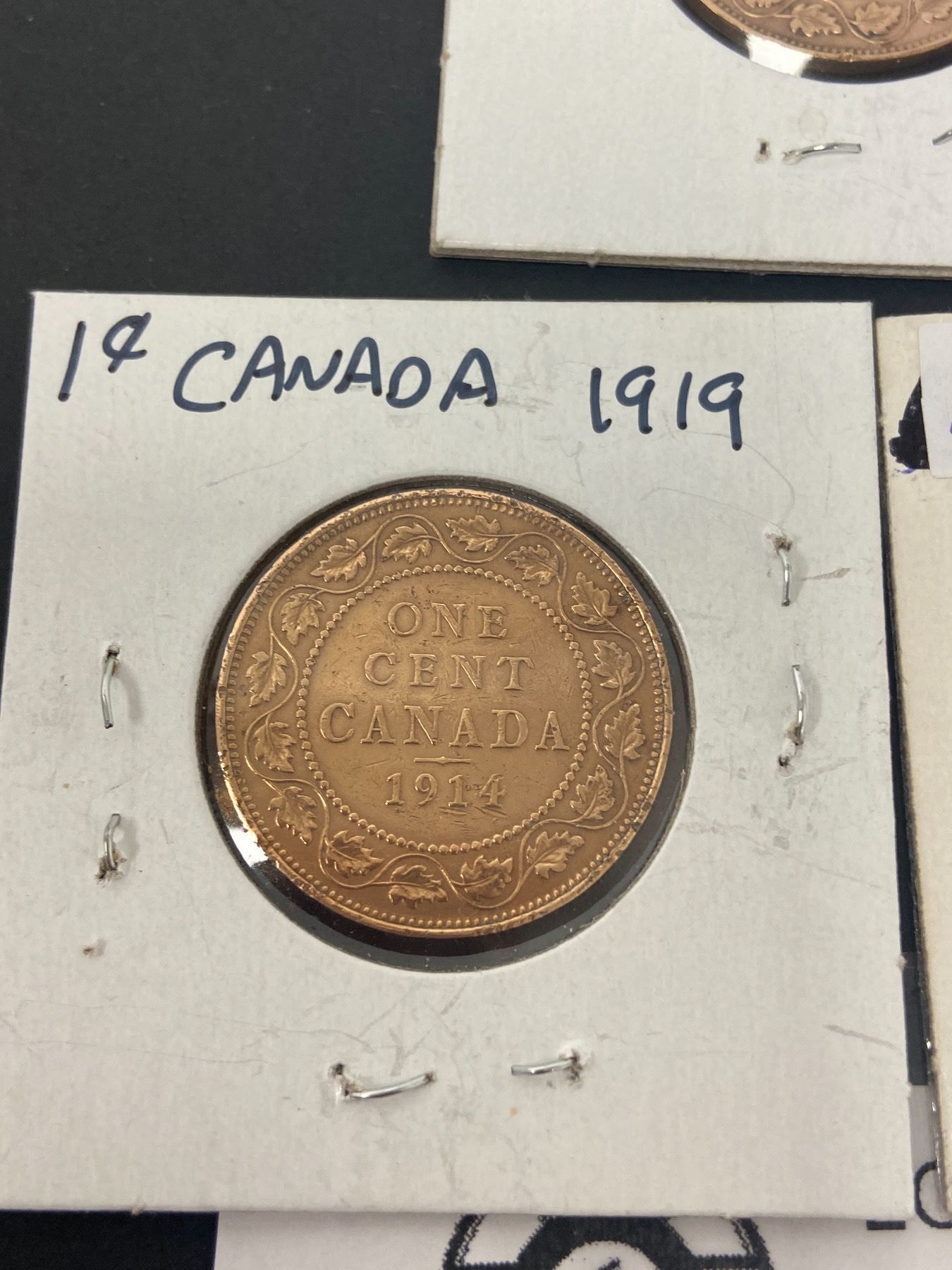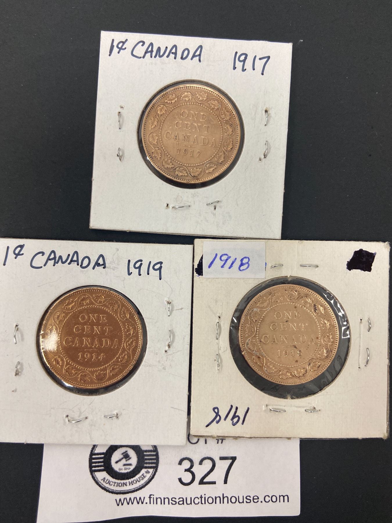 Lot of 3Canada Large Pennies in Cardboard Holders 1917 1918 and 1919