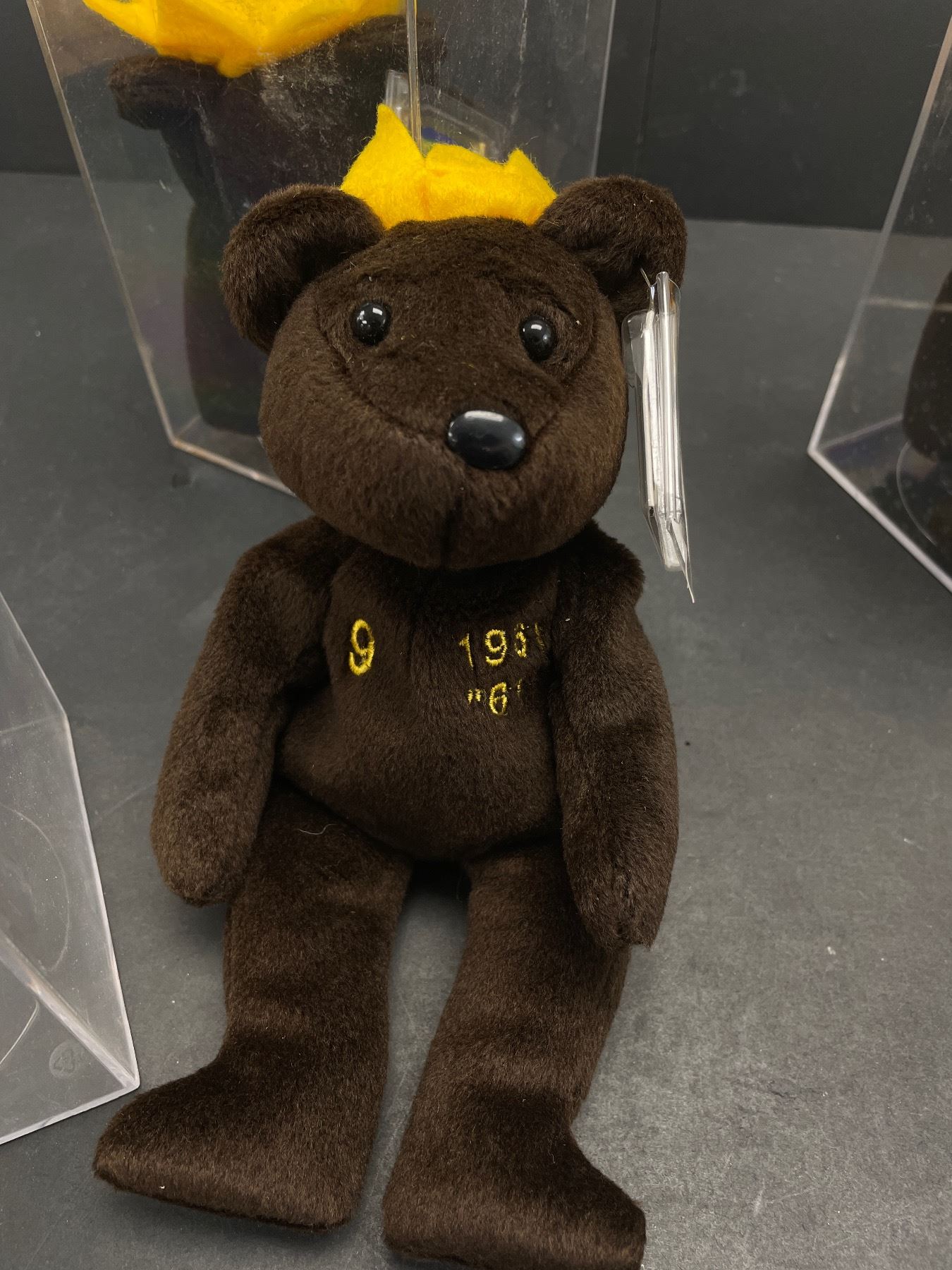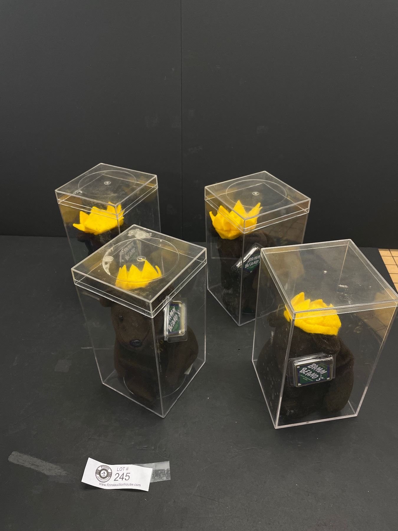 Lot of 4 Baseball Bamm Beano Beany Babies in Museum Cases