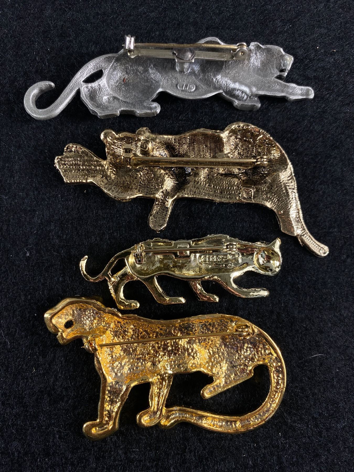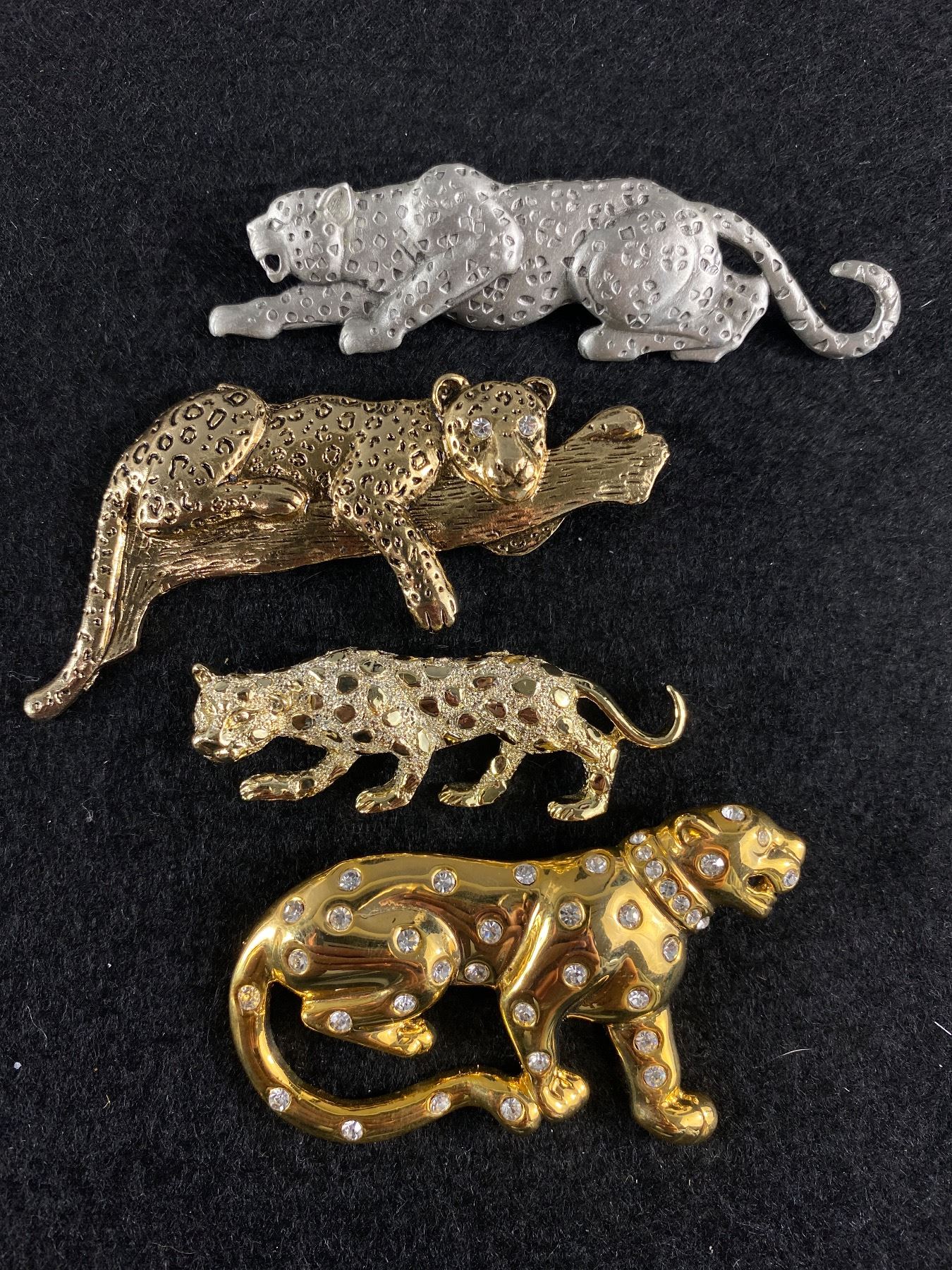 Lot of 4 Leopards and Jaguar Brooches Gold and Silver Tone