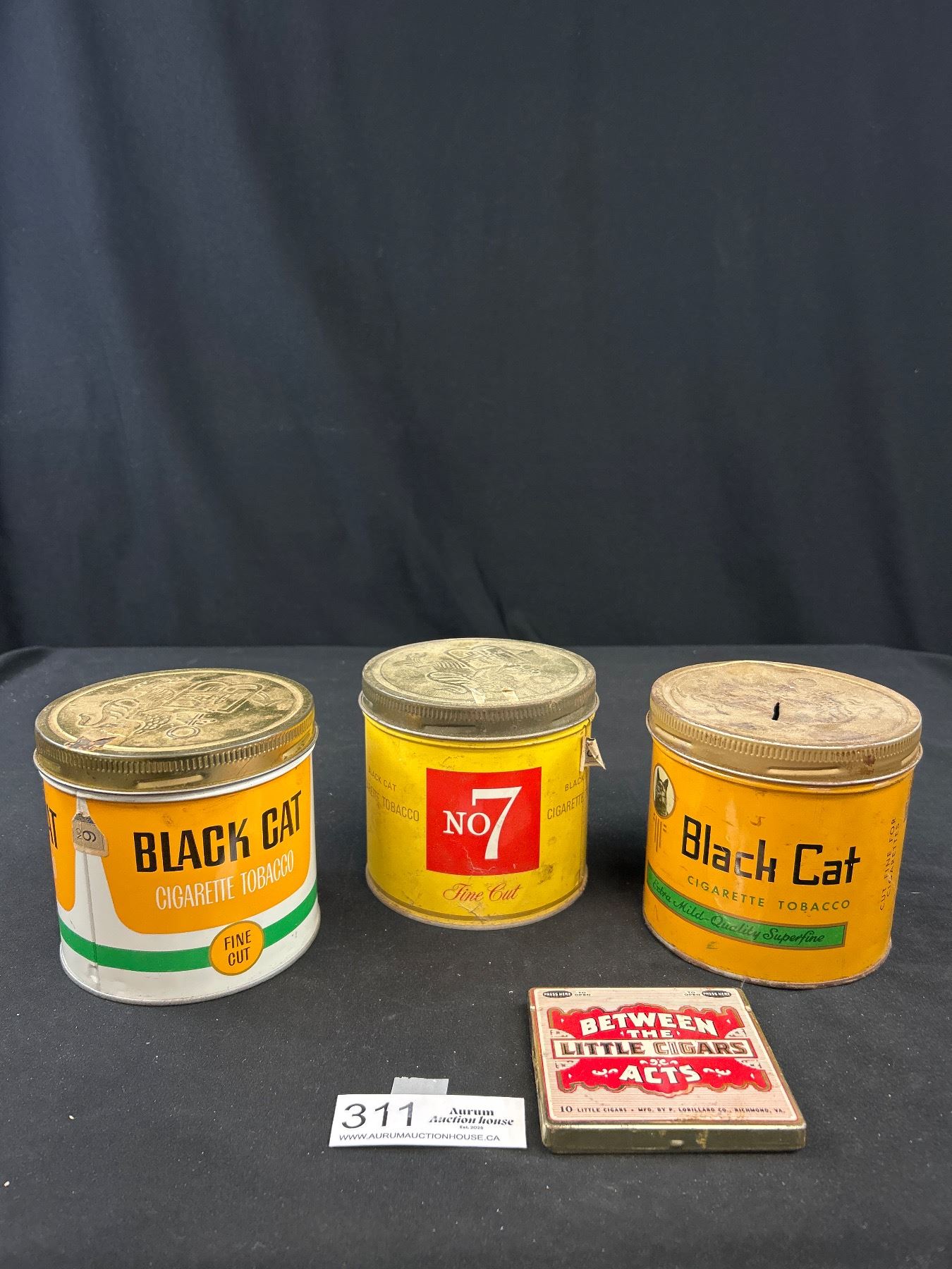 Lot of 4 Tobaco Tins,Black Cat, etc