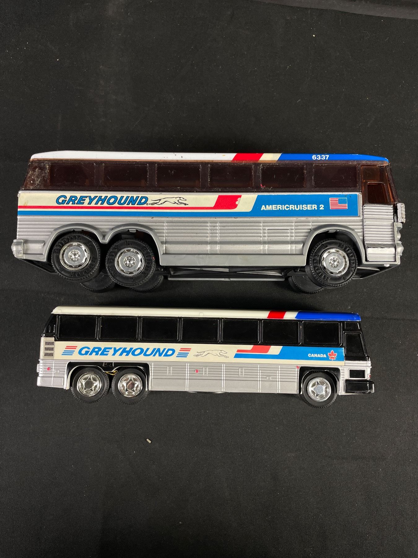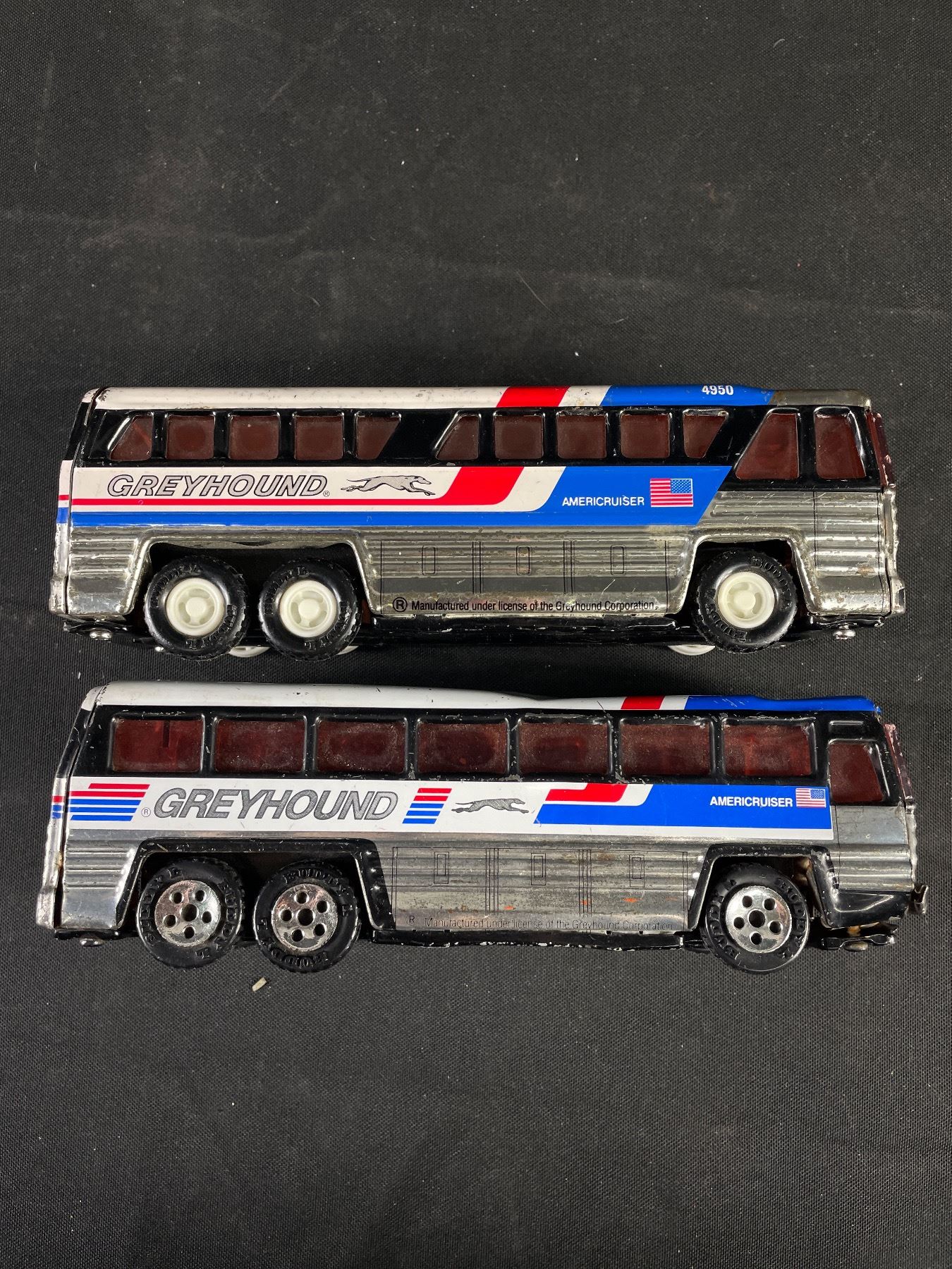 Lot of 4 Various Sizes Die Cast Greyhound Buses