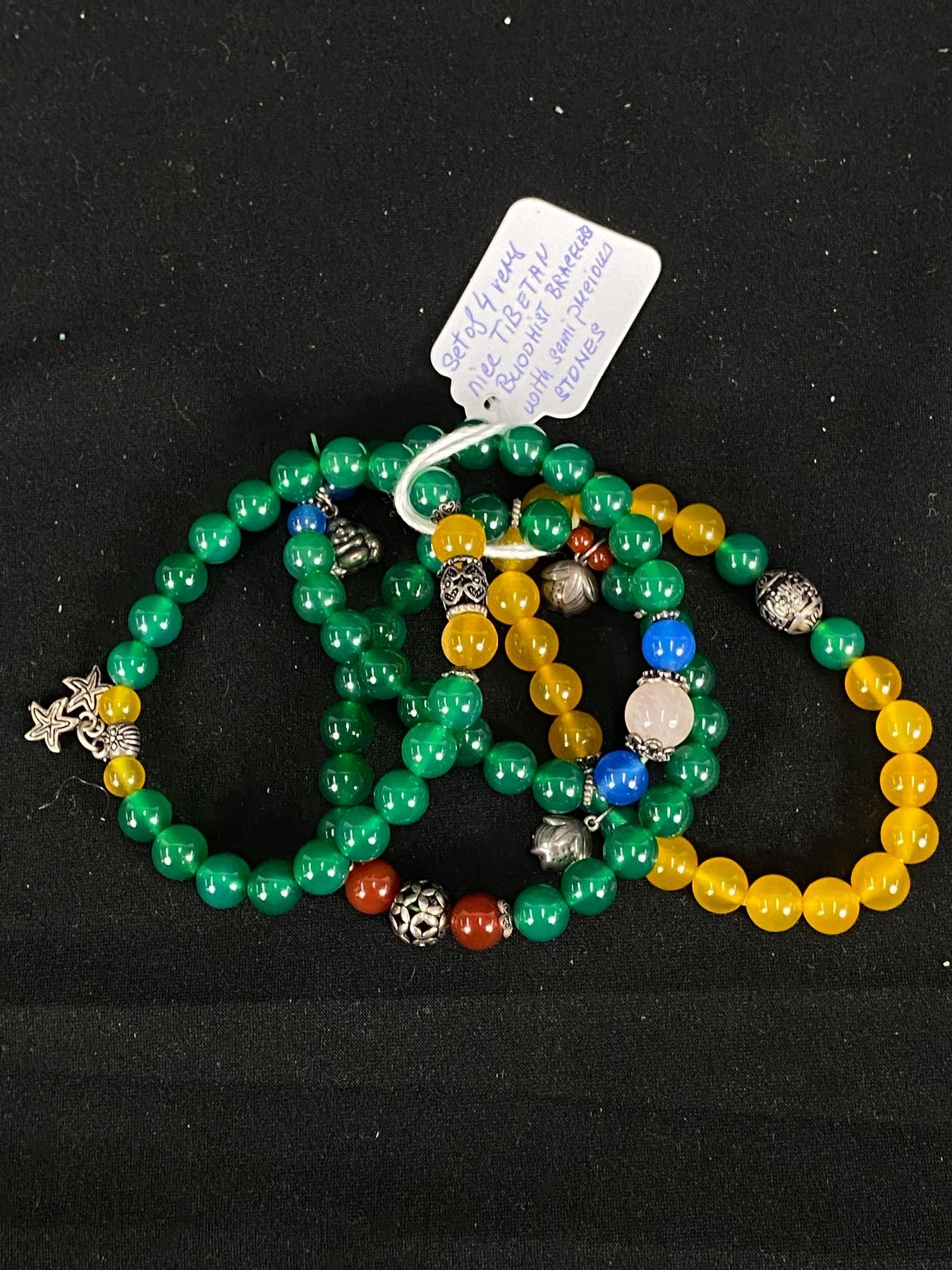 Lot of 4 Very Nice Tibetan Buddhist Bracelets with Semi Precious Stones