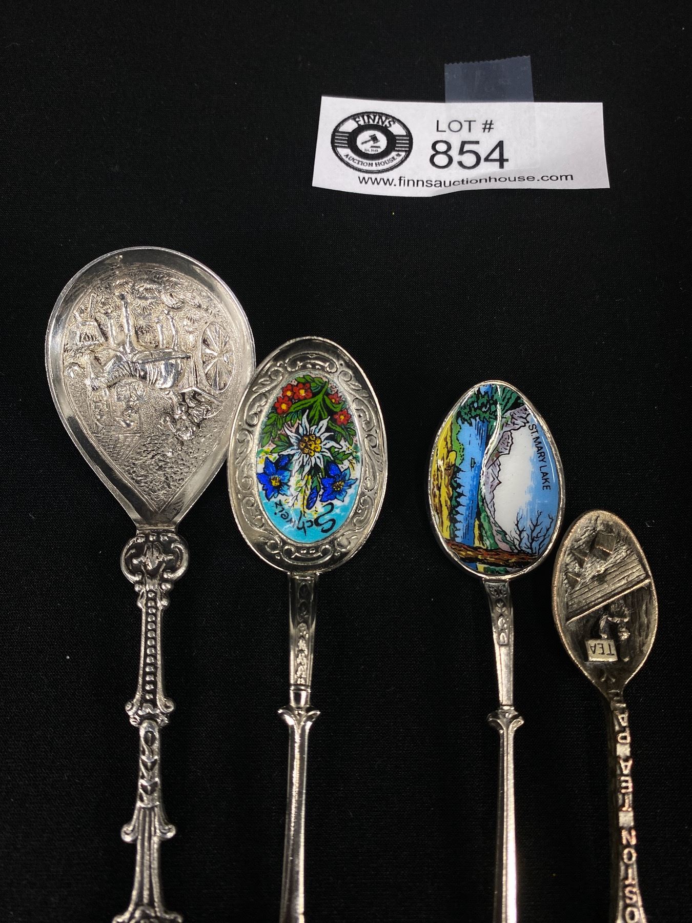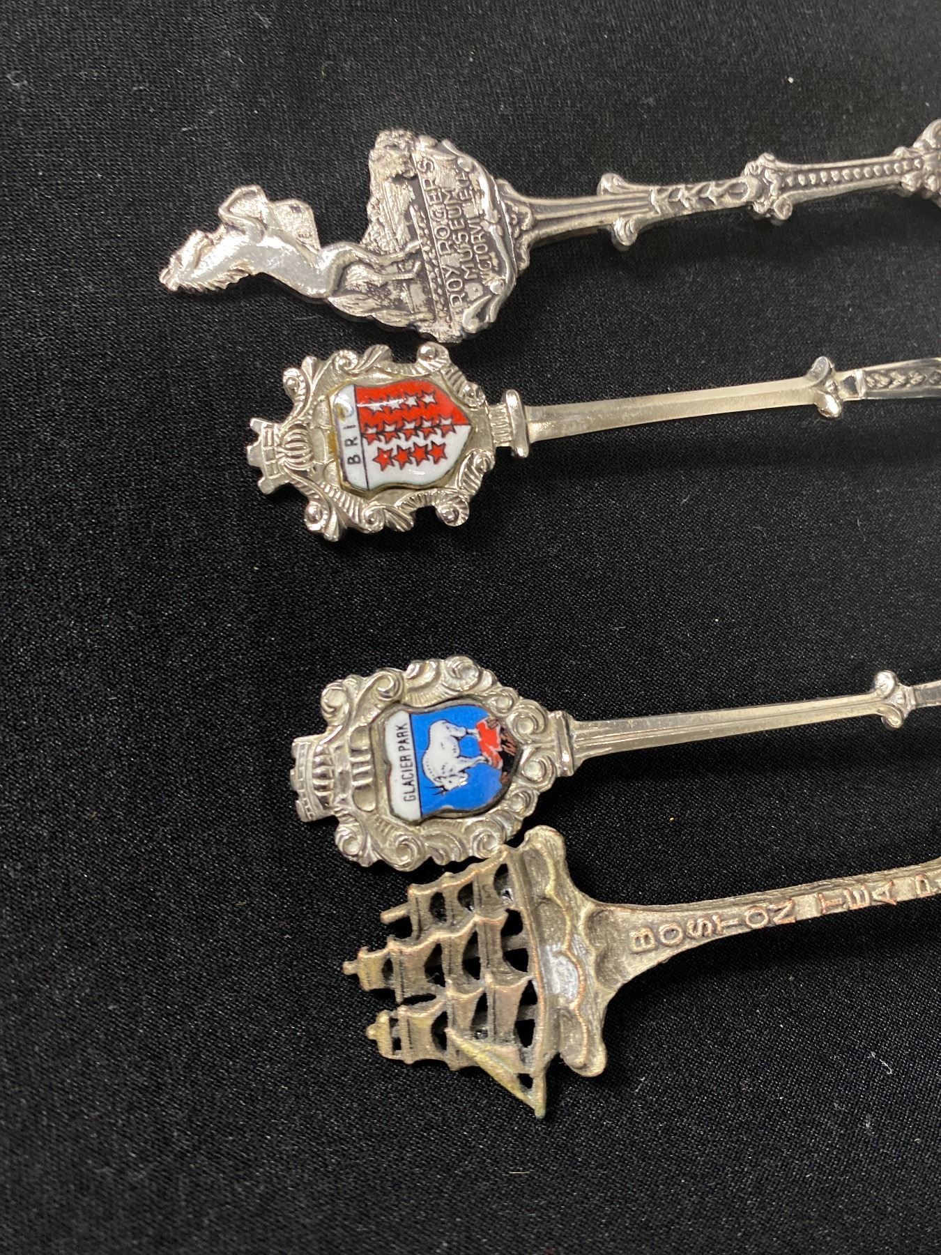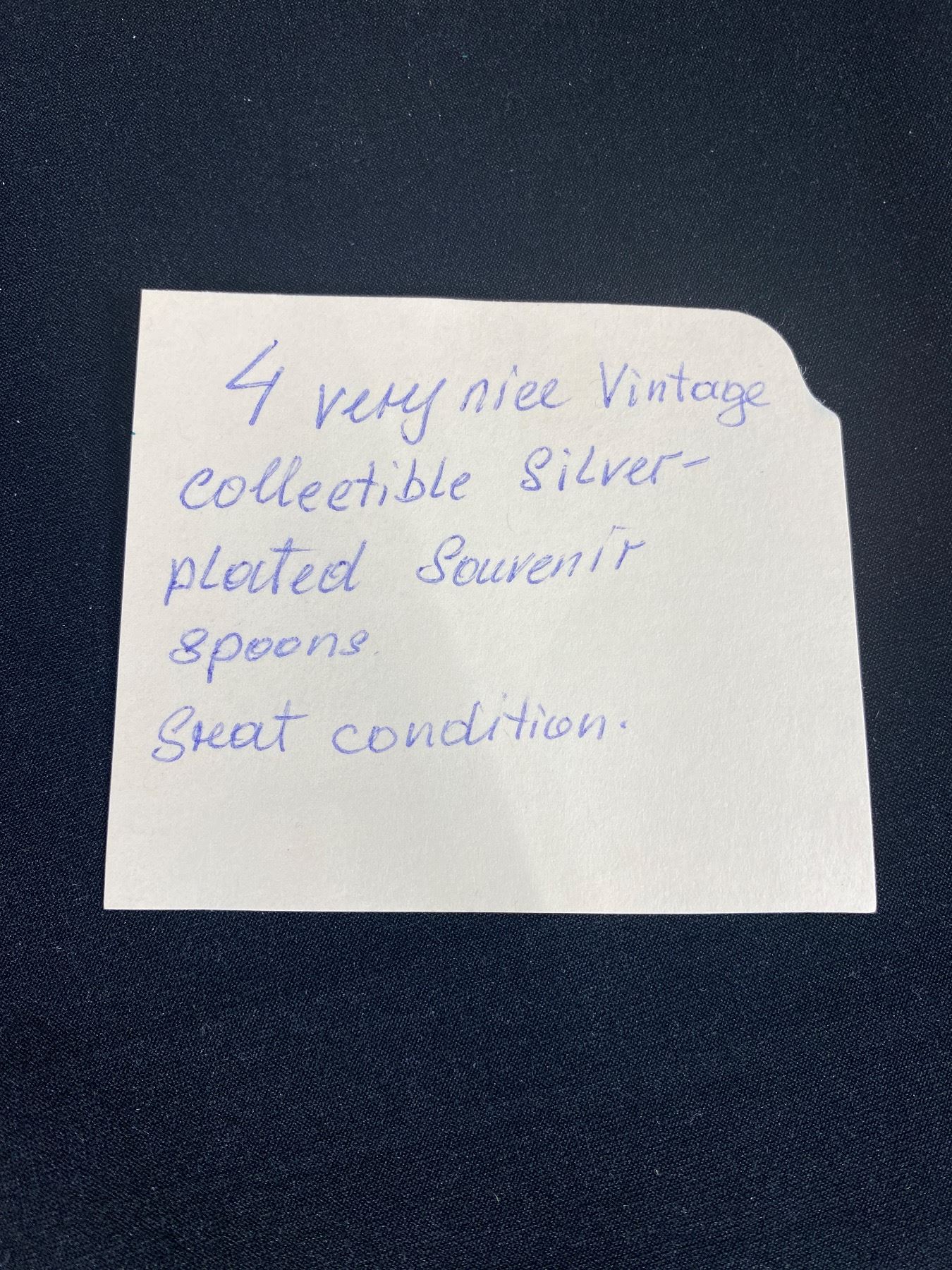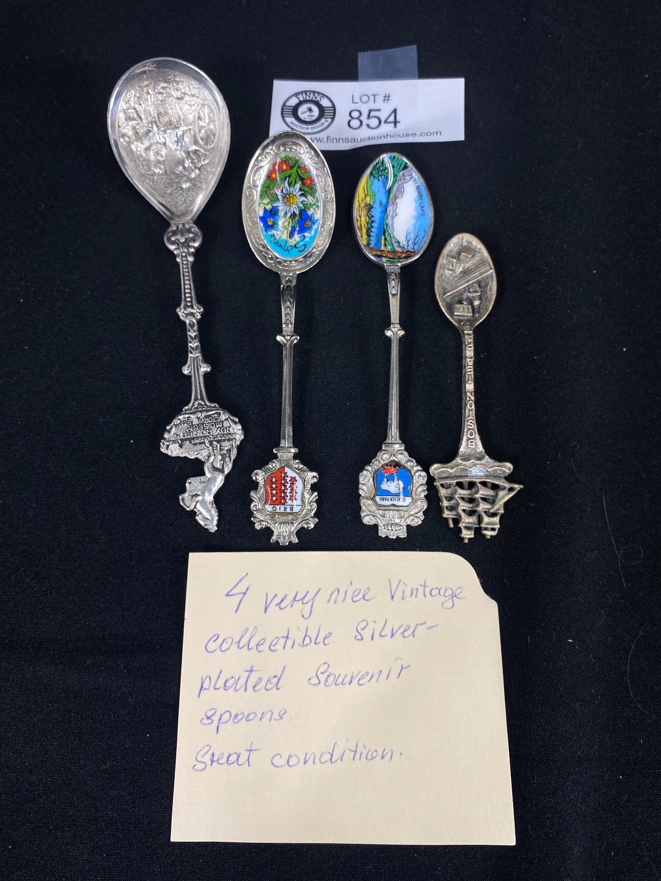 Lot of 4 Very Nice Vintage Collectible Silver Plated Souvenir Spoons Great Condition