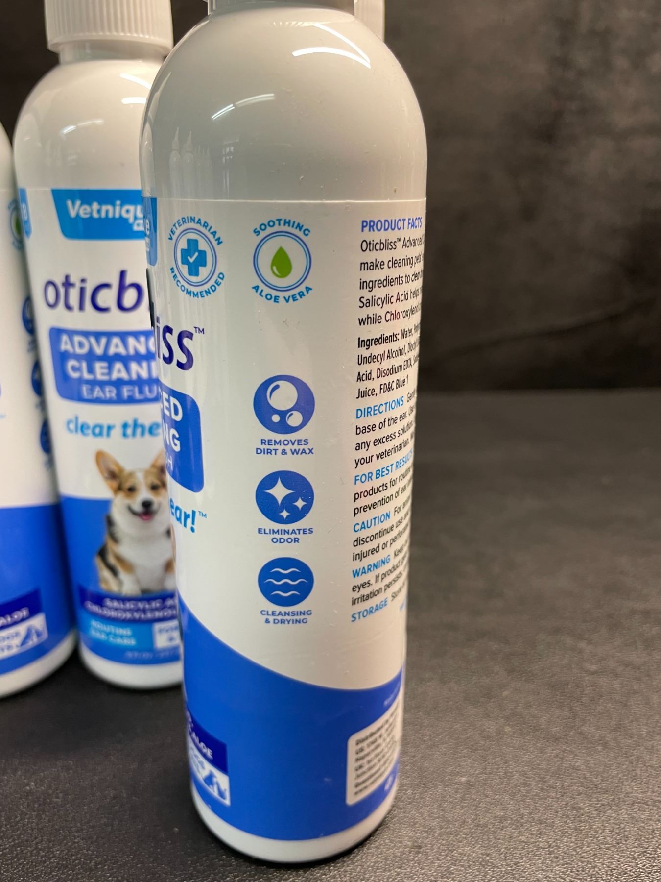 Lot of 4 Vetnique Labs Oticbliss Advanced Cleaning Ear Flush for Dogs & Cats (237ml) - New