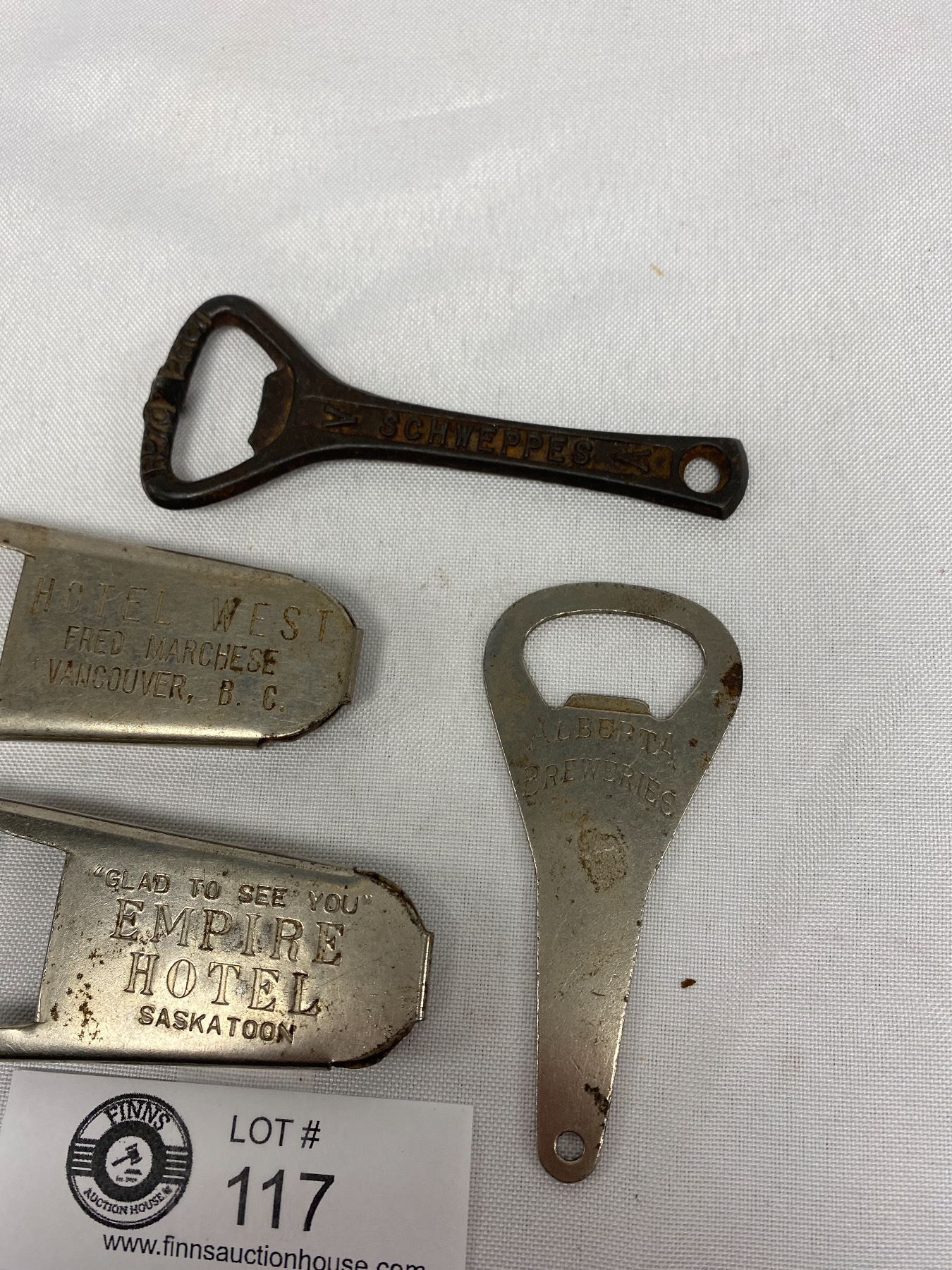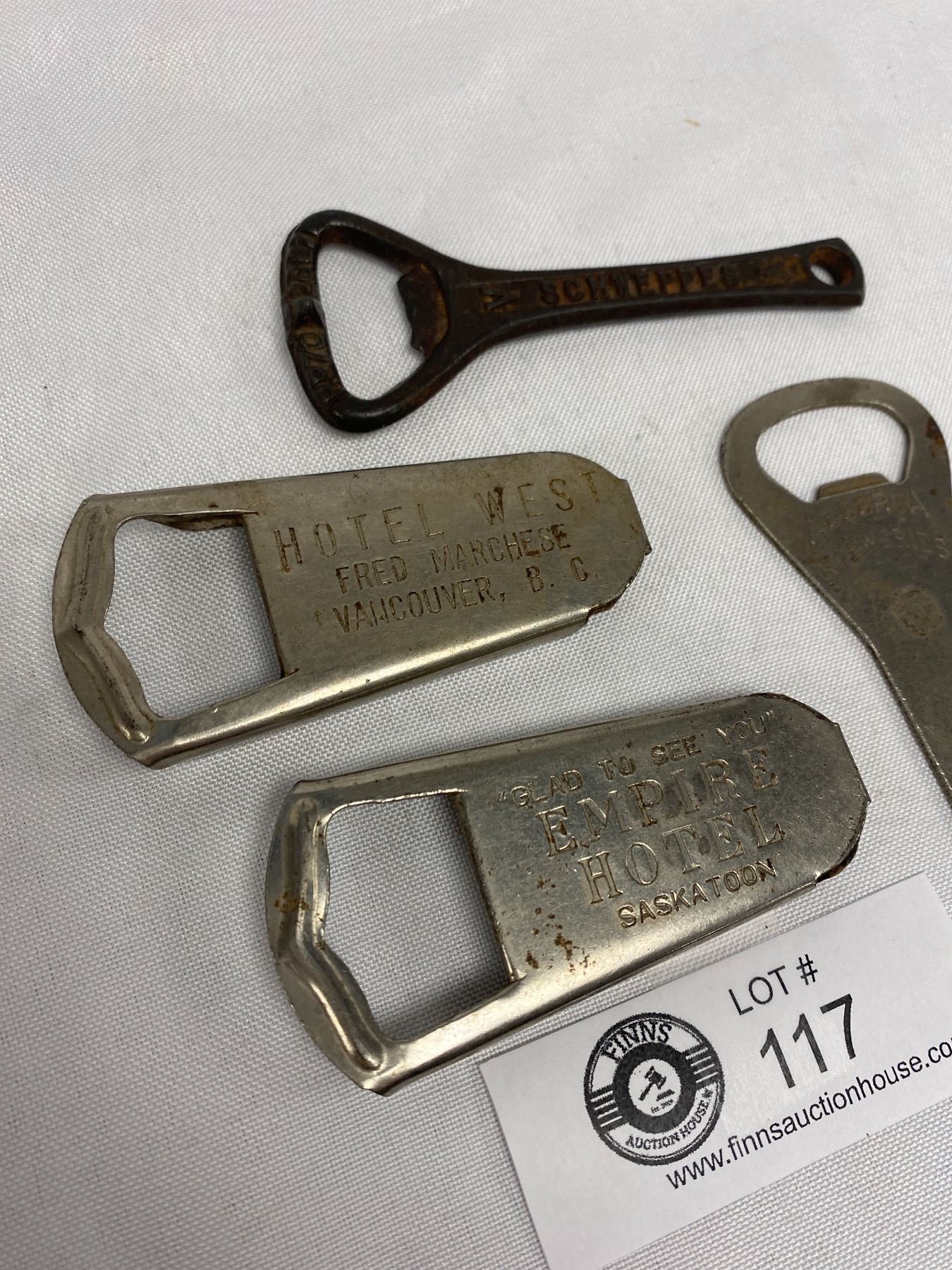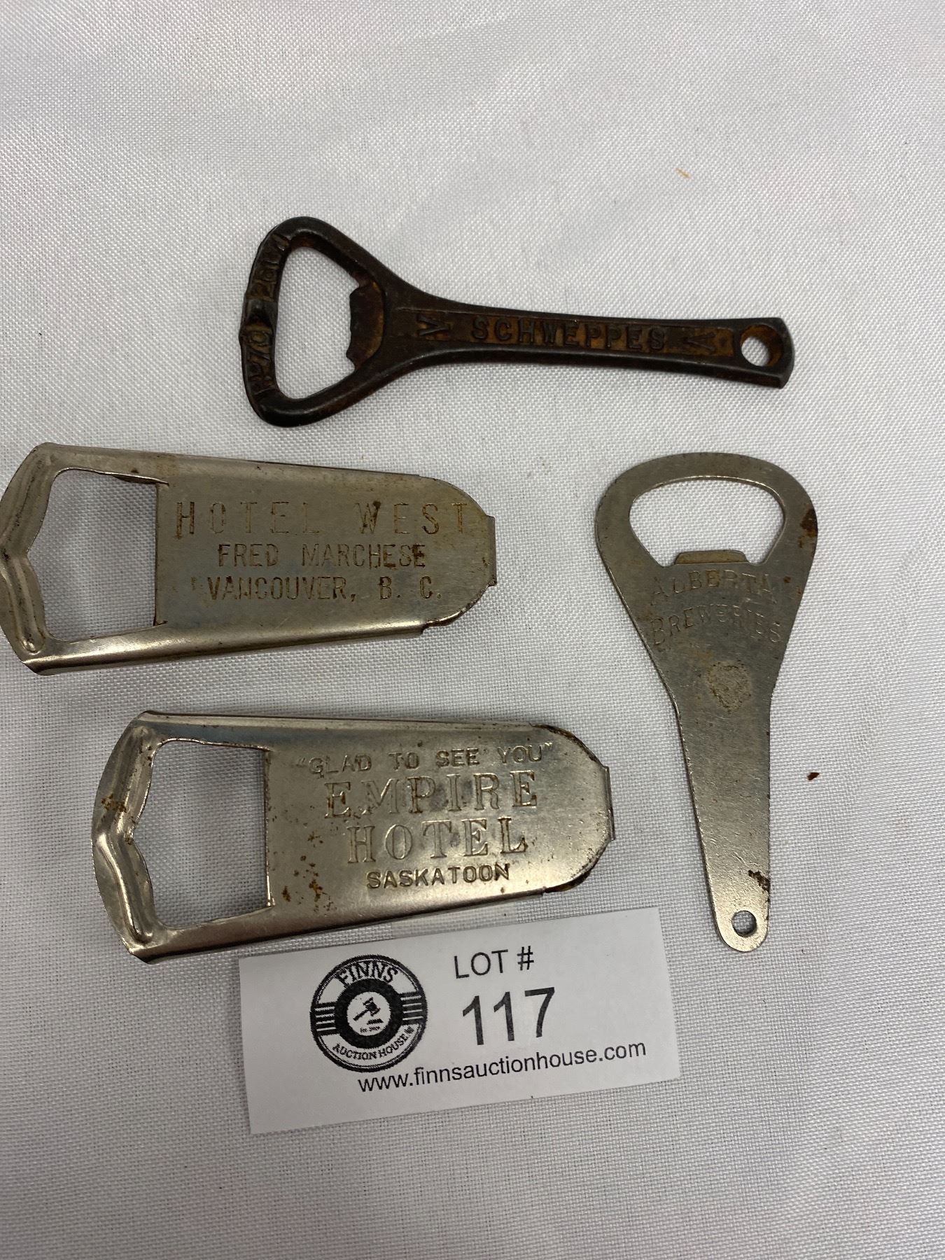 Lot of 4 Vintage Advertising Bottle Openers Hotel West Vancouver Schwepps Saskatoon Etc