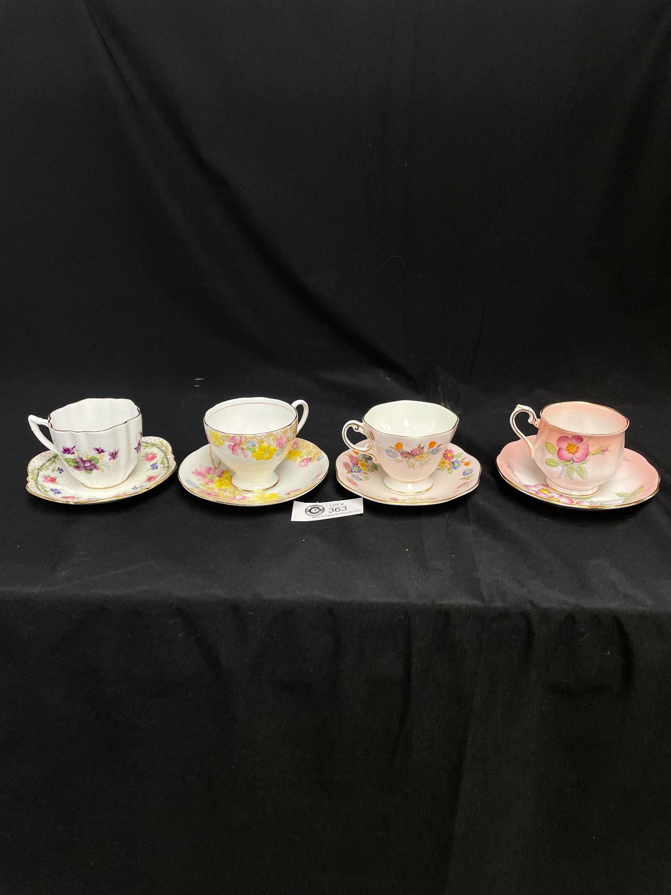 Lot of 4 Vintage Bone China Tea Cup and Saucer - Windsor, Etc.