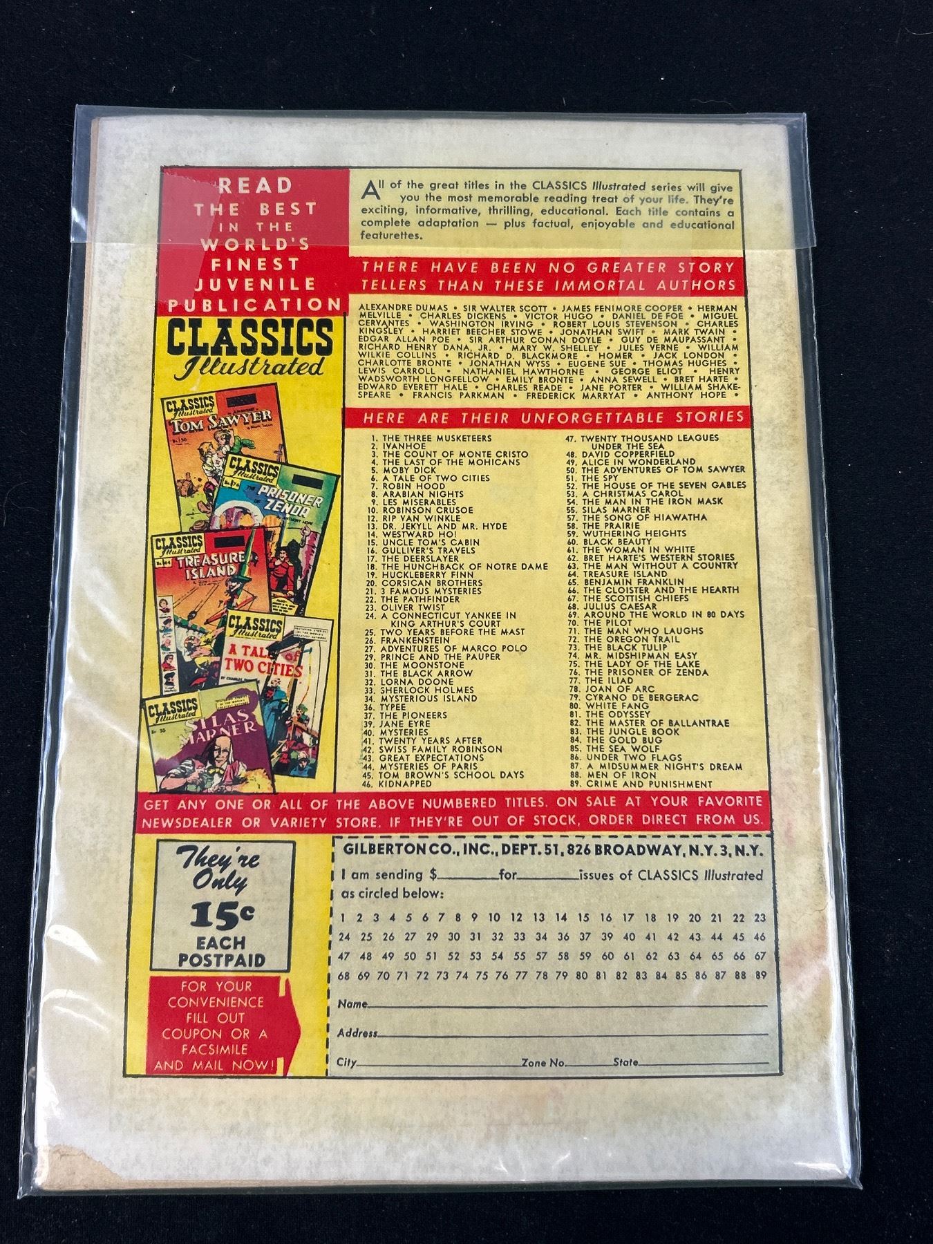 Lot of 4 Vintage Classics Illustrated 15 Cent Comics