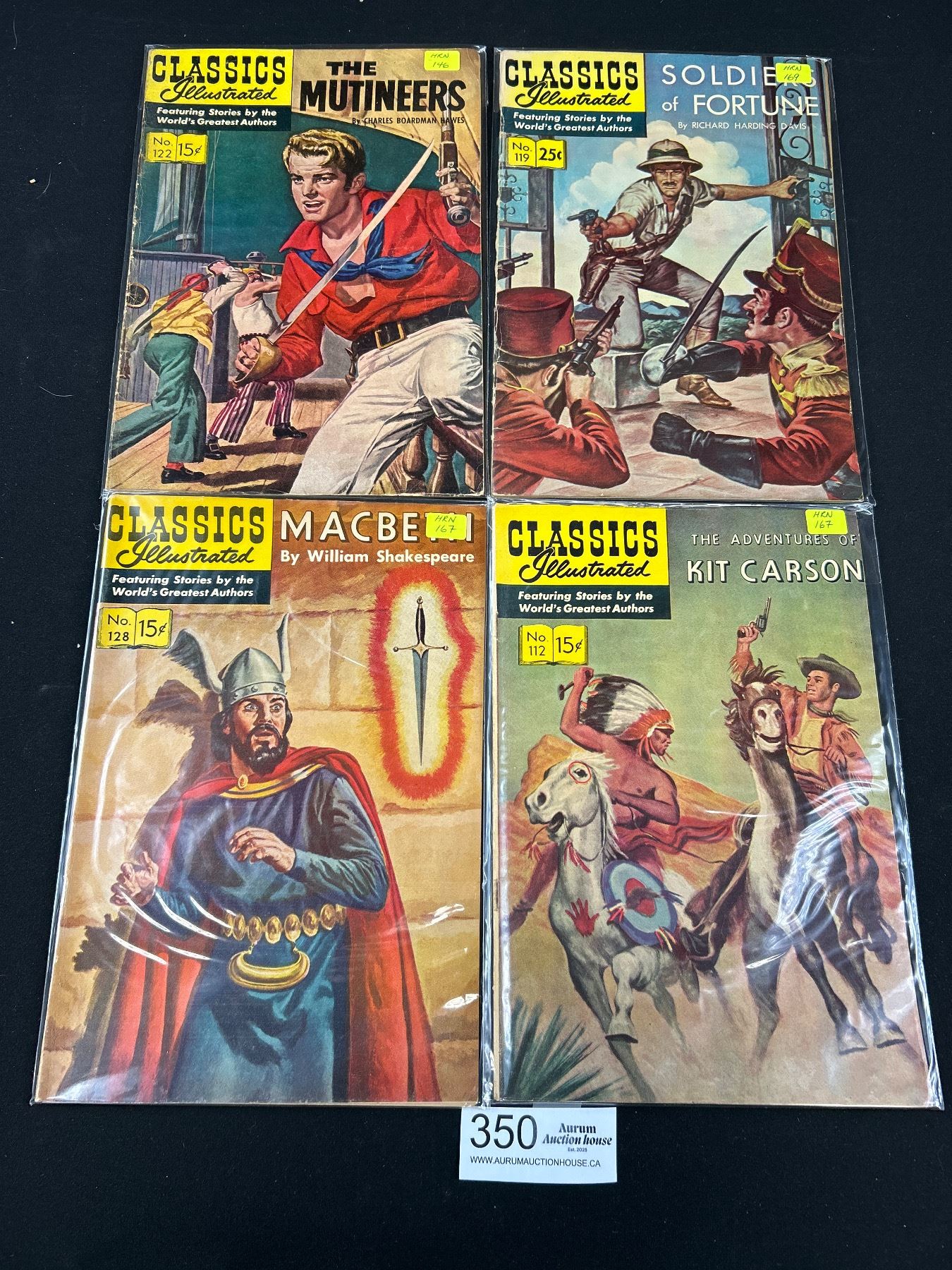 Lot of 4 Vintage Classics Illustrated 15 Cent Comics