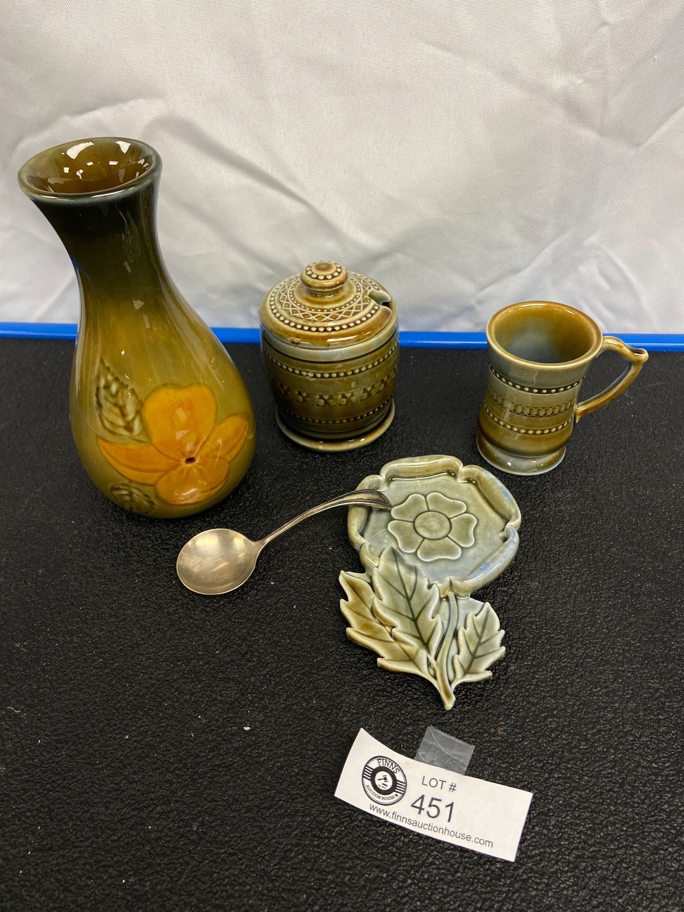 Lot of 4 Wade Irish Pocelain Itms. Vase,Condiment Jar, Cup and Poppy