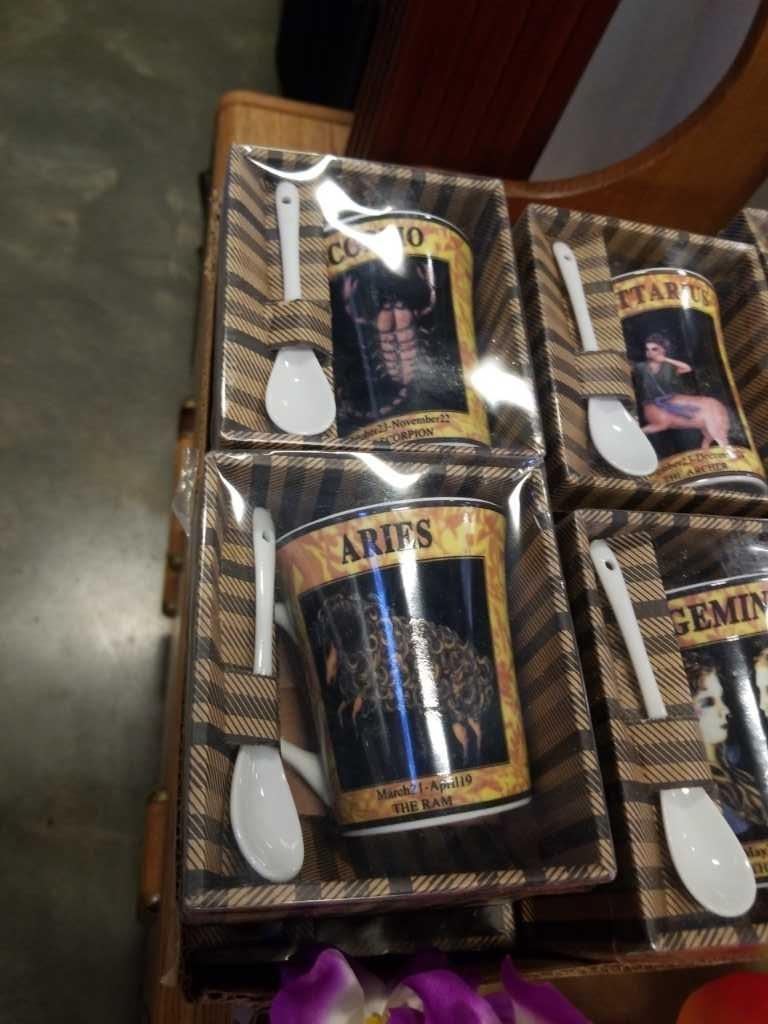 Lot of 4 new artificial orchids and 12 new zodiac mugs