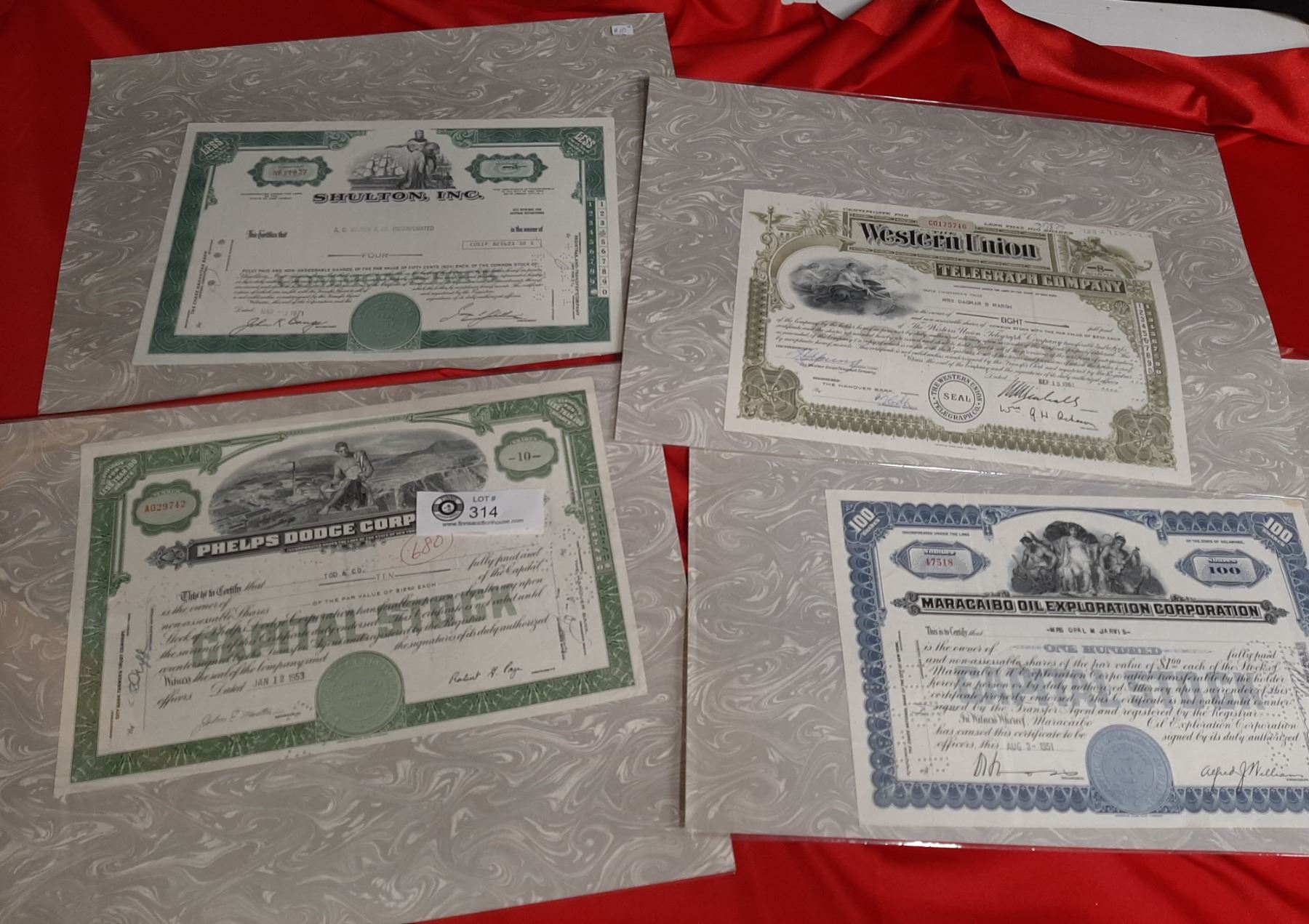 Lot of 4 Vintage Stock Certificates Western Union Maracaibo Oil Exploration Etc