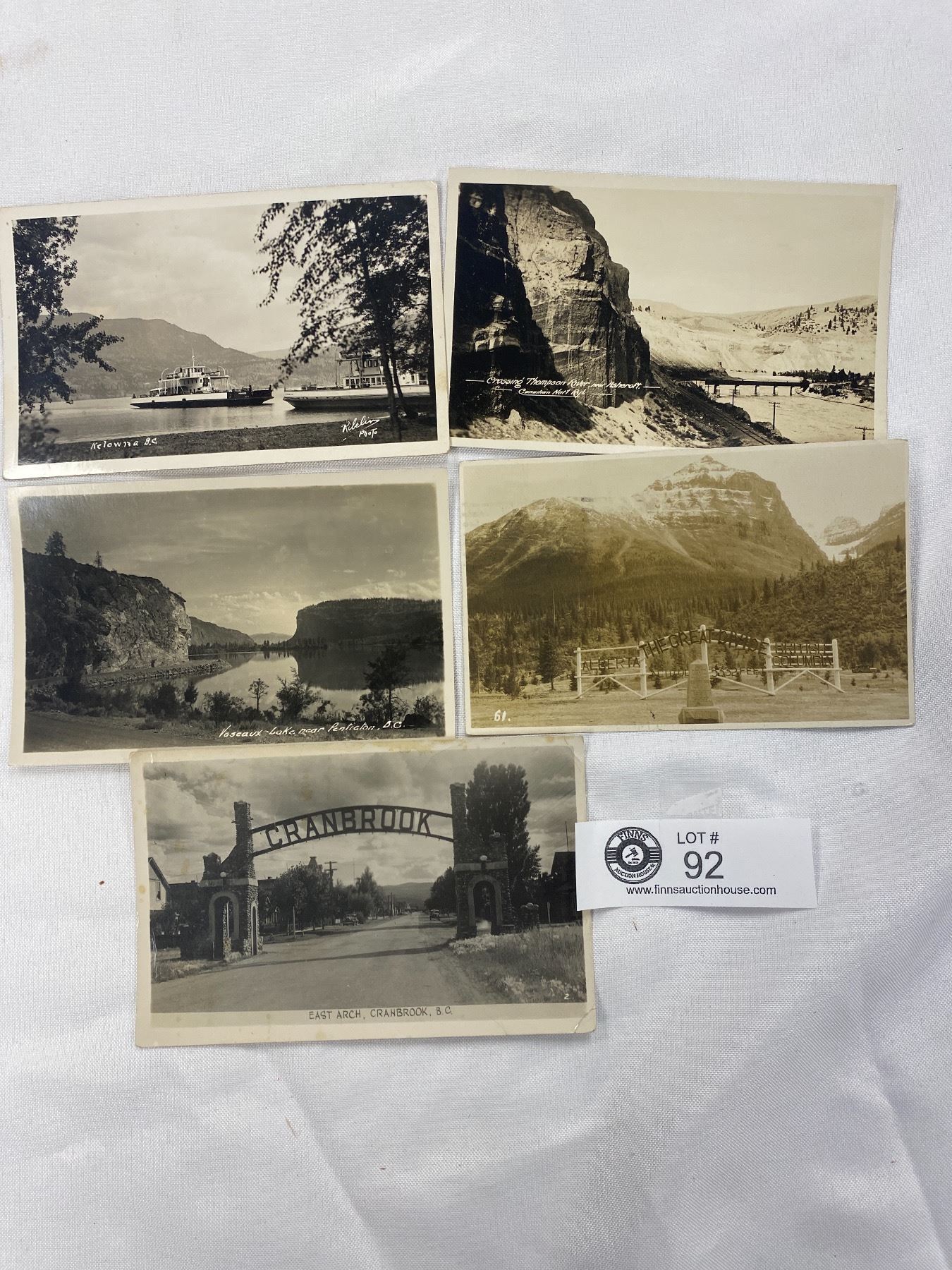 Lot of 5 1930s BC Postcards - Cranbrook, Kelowna, Etc.