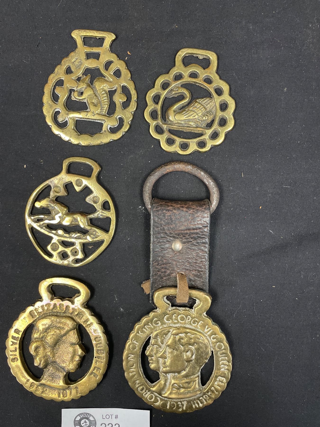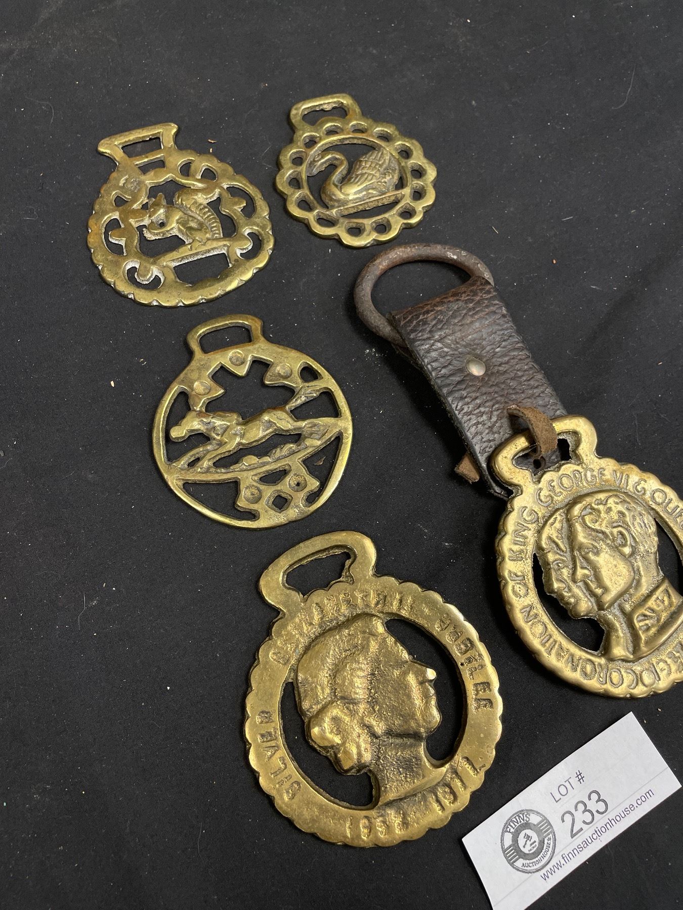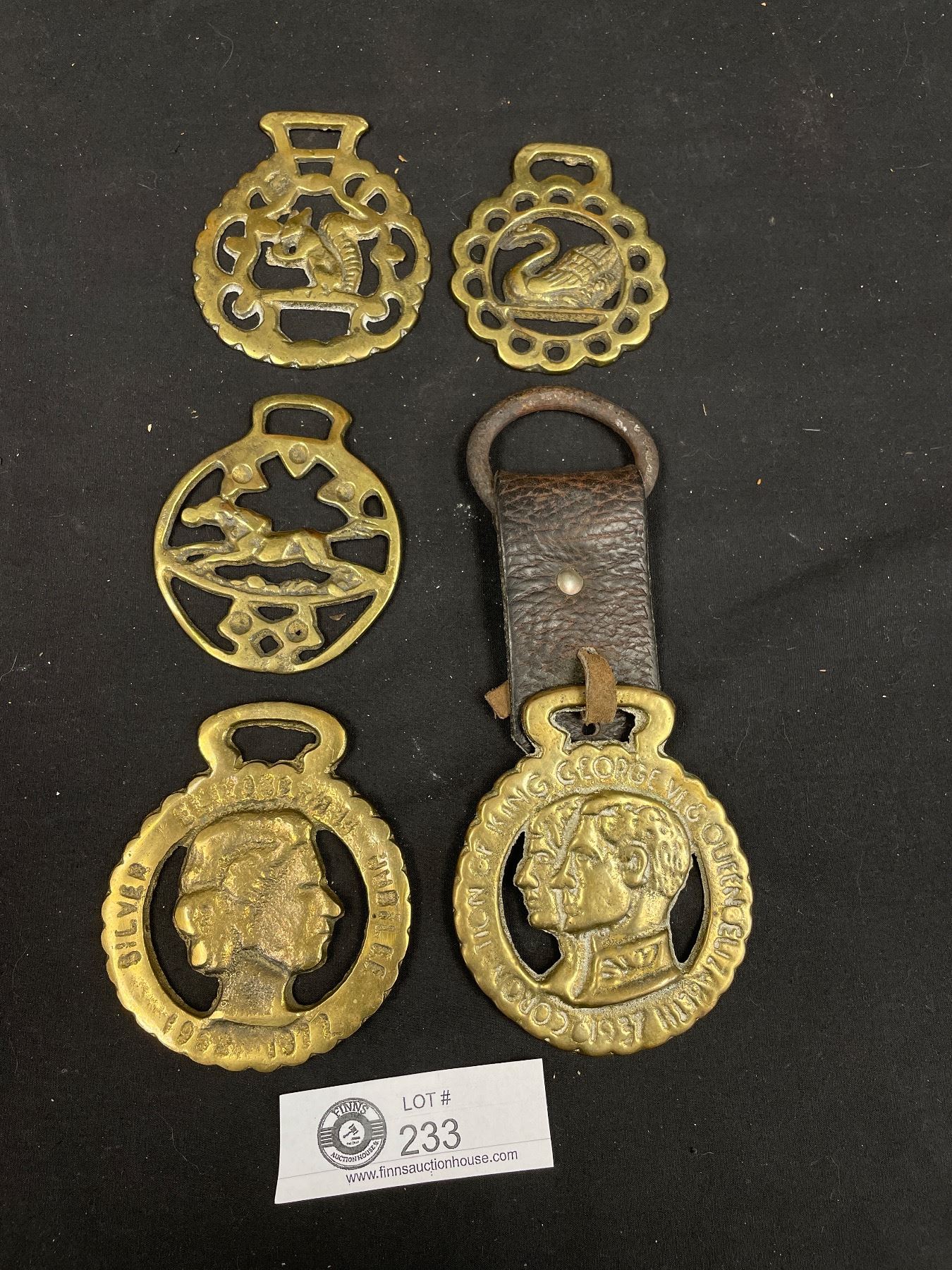Lot of 5 Brass Horse Medallions - Coronation of King George V1 and Queen Elizabeth 1937, Etc.