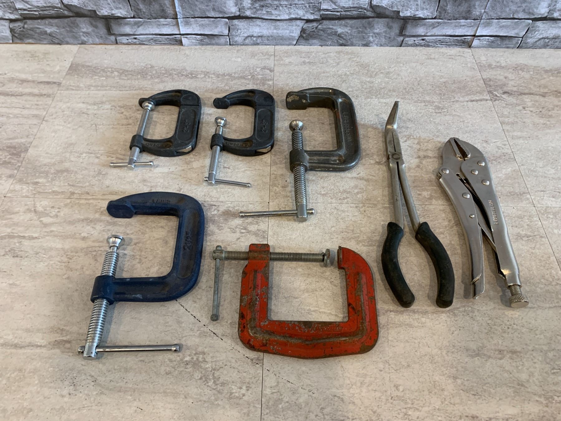 Lot of 5 C Clamps - 1 Vice Grip & 1 Angled Needle Nose