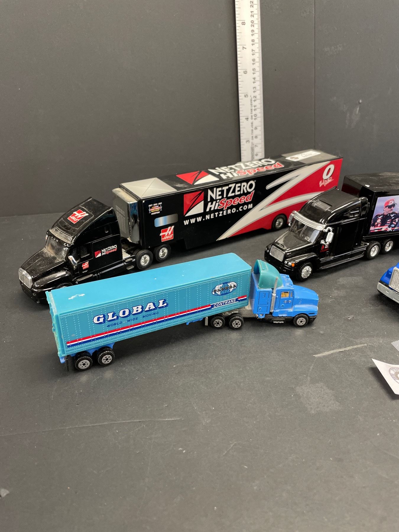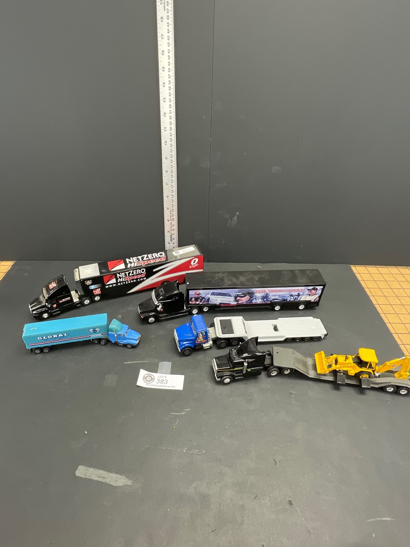 Lot of 5 Die Cast Semi Trucks and Trailers 1 With a John Deer Backhoe