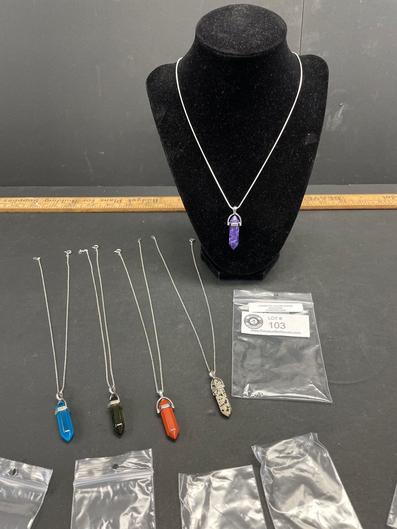 Lot of 5 Gemstone Healing Points Necklaces Chains Included