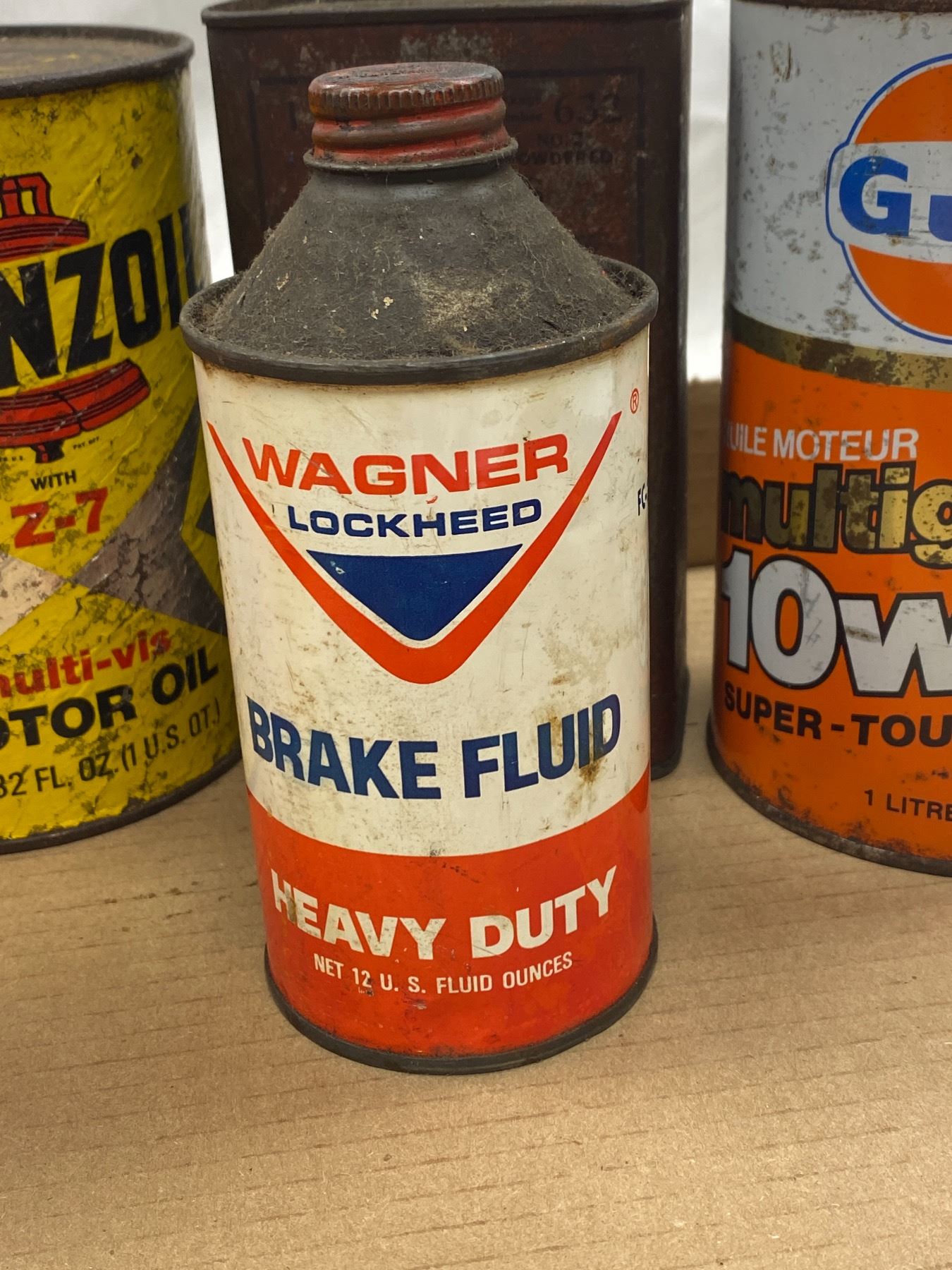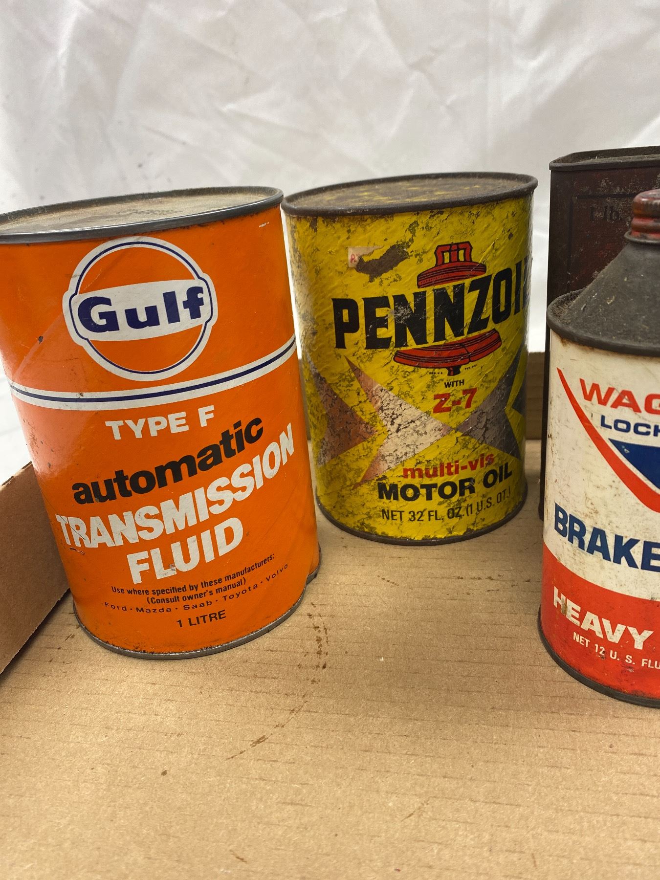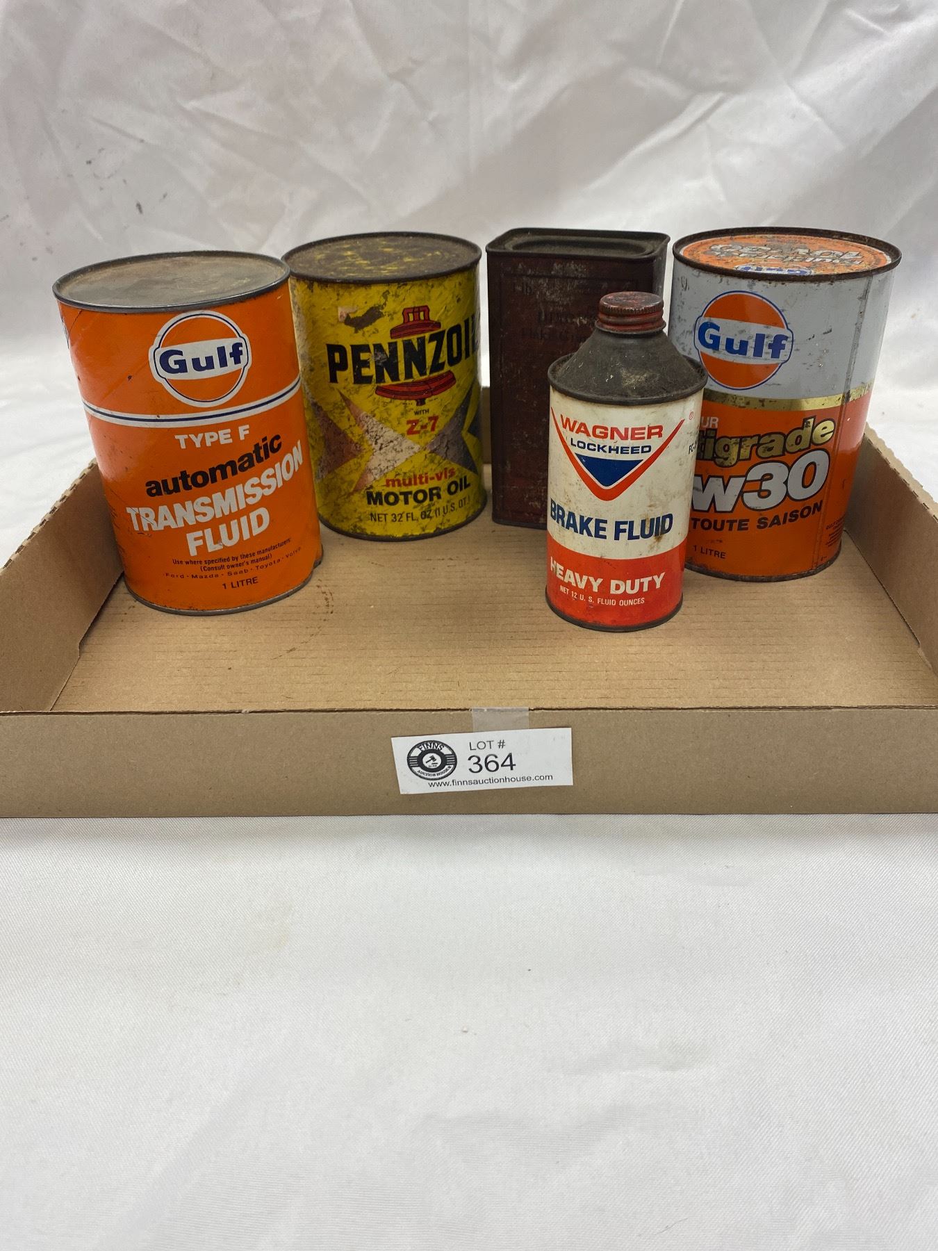Lot of 5 Vintage Oil Cans, Gulf, Penzoil, etc
