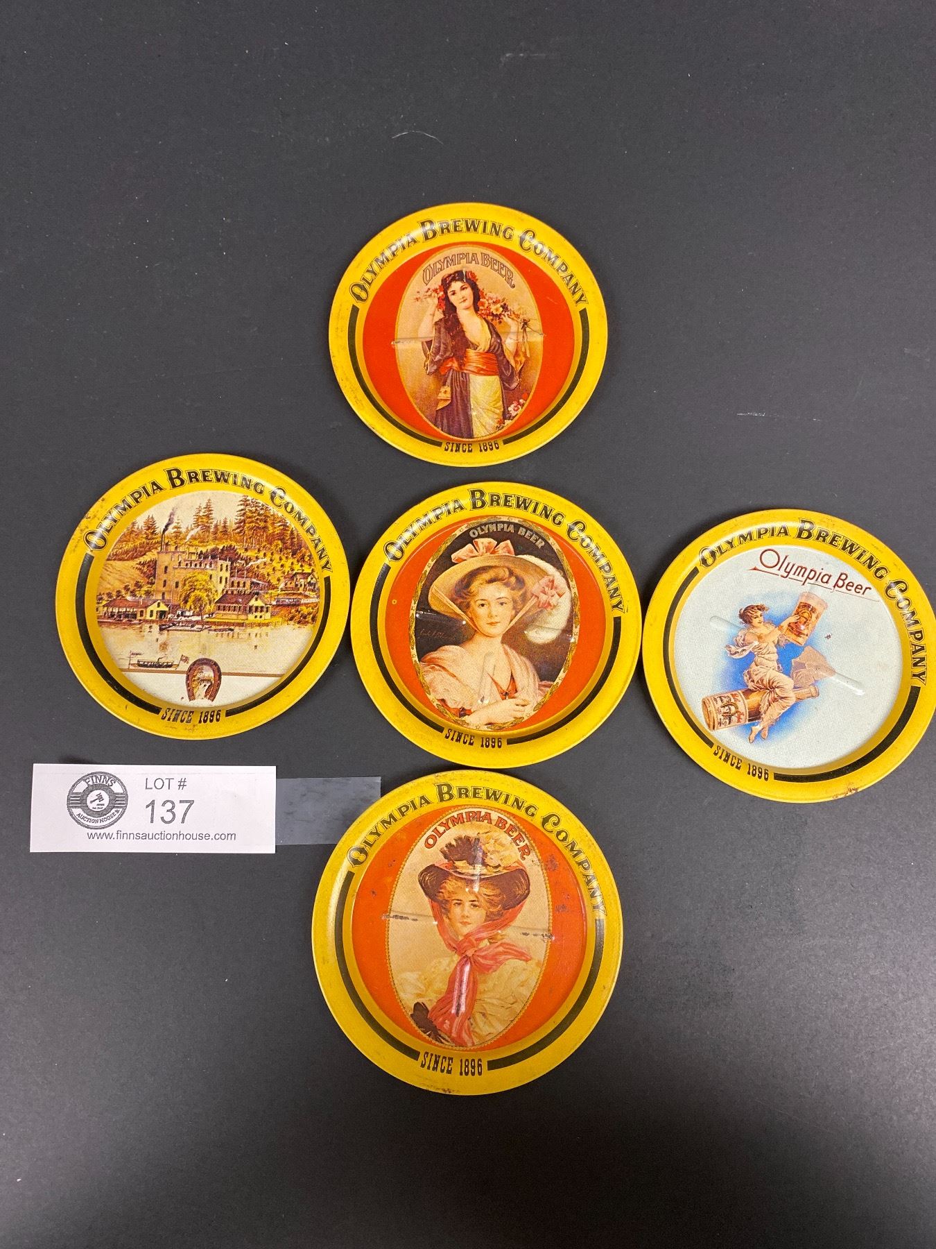Lot of 5 Vintage Olympia Brewing Company Lithograph Coasters