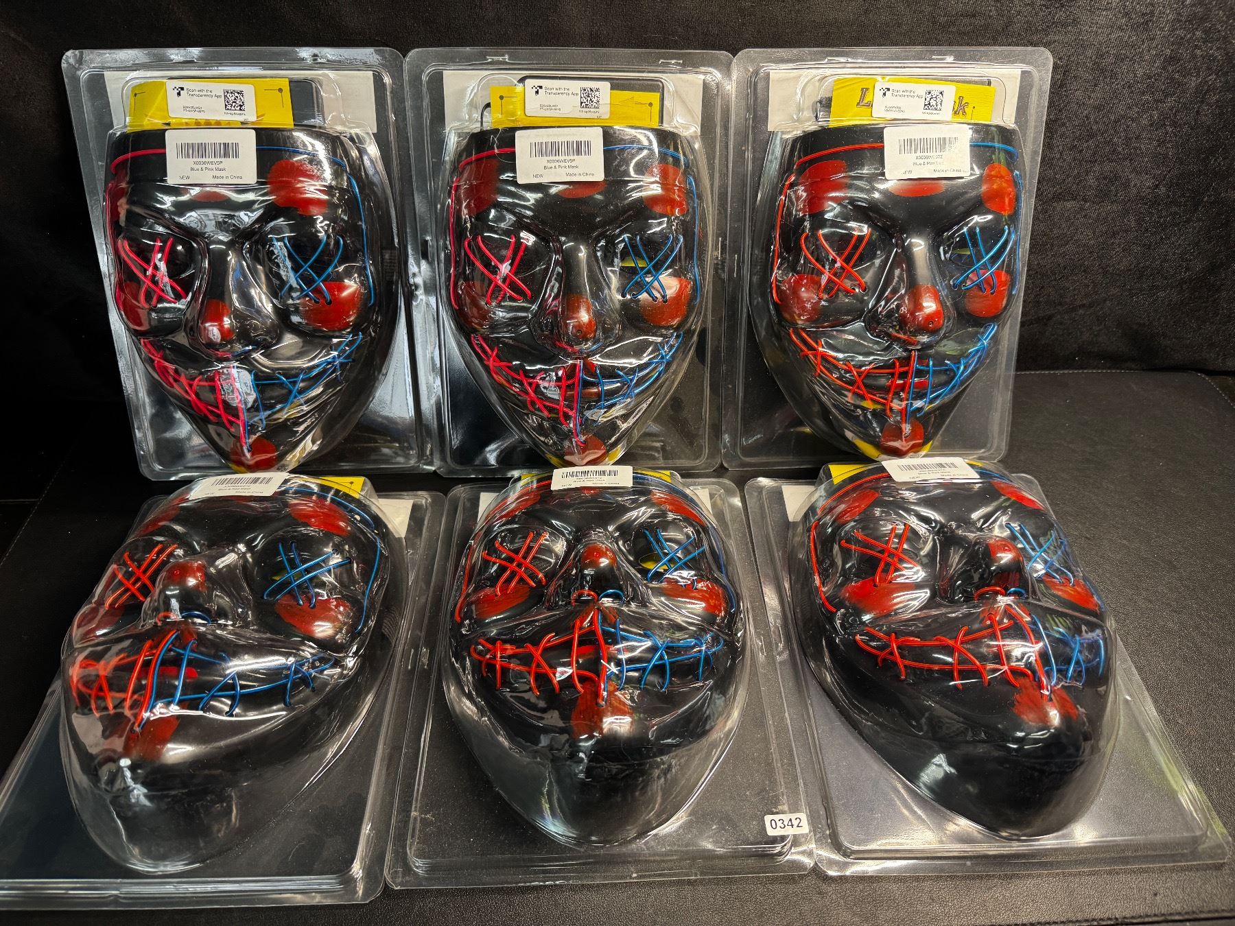 Lot of 6 LED Light-Up Purge Scary Halloween/Cosplay Face Masks - Brand New