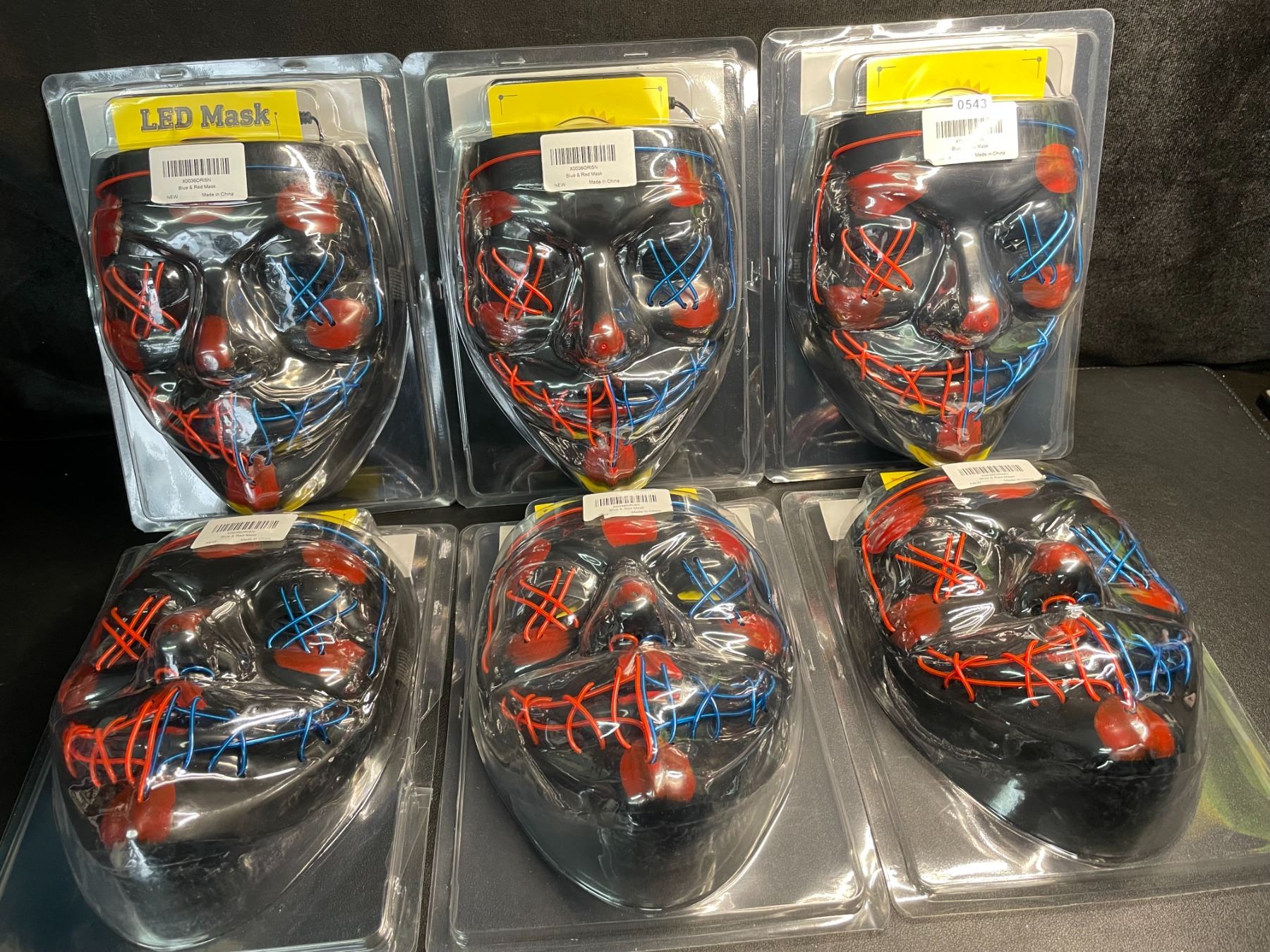 Lot of 6 LED Light-Up Purge Scary Halloween/Cosplay Face Masks - Brand New