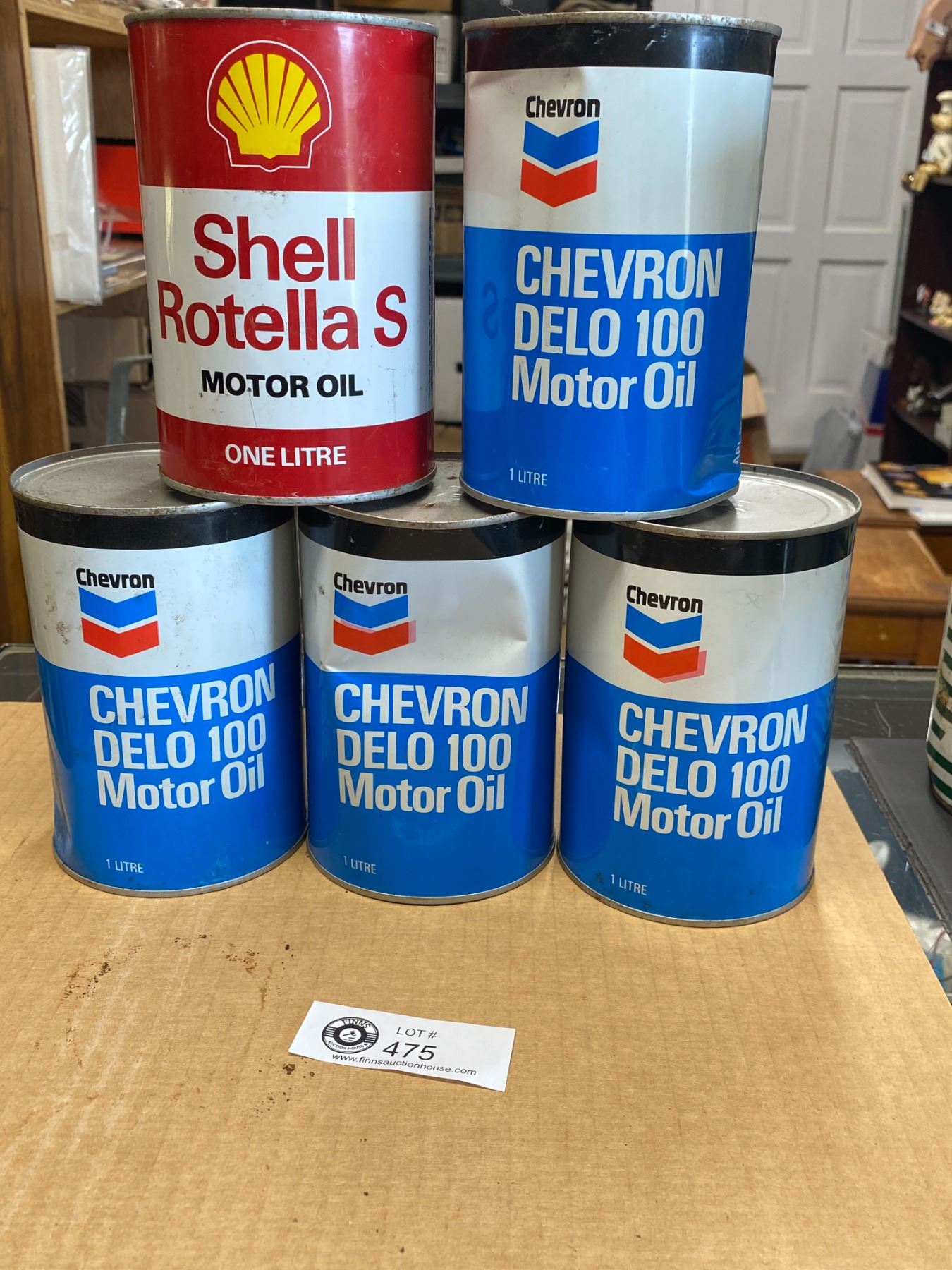 Lot of 6 Vintage Oil Cans. Some with Contents