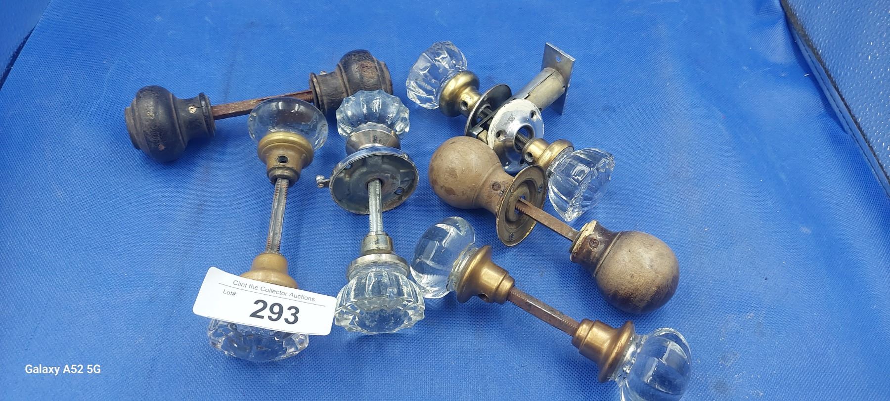 Lot of 6 door knobs metal and glass