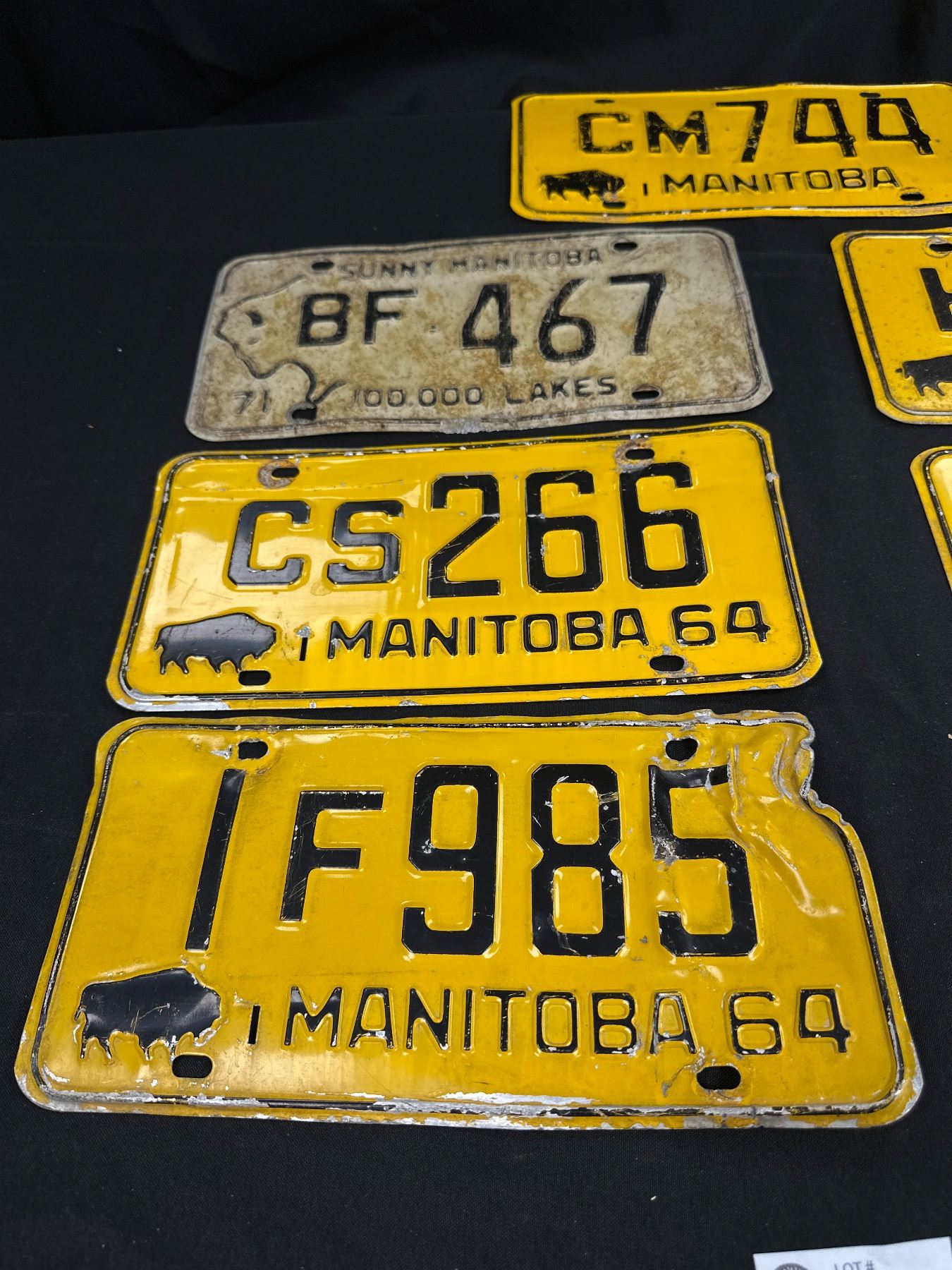 Lot of 7 Vintage Manitoba Licence Plates. Various Years