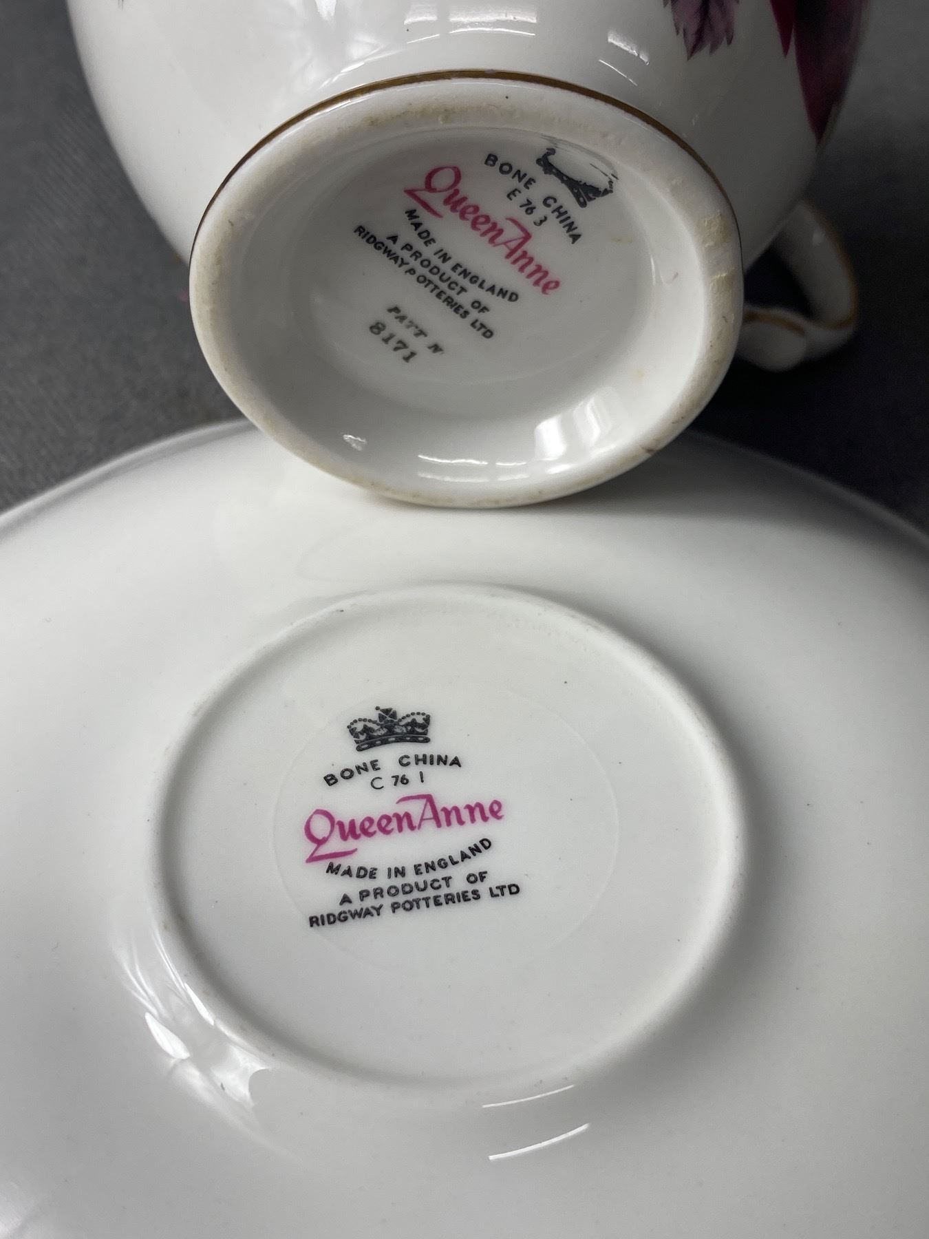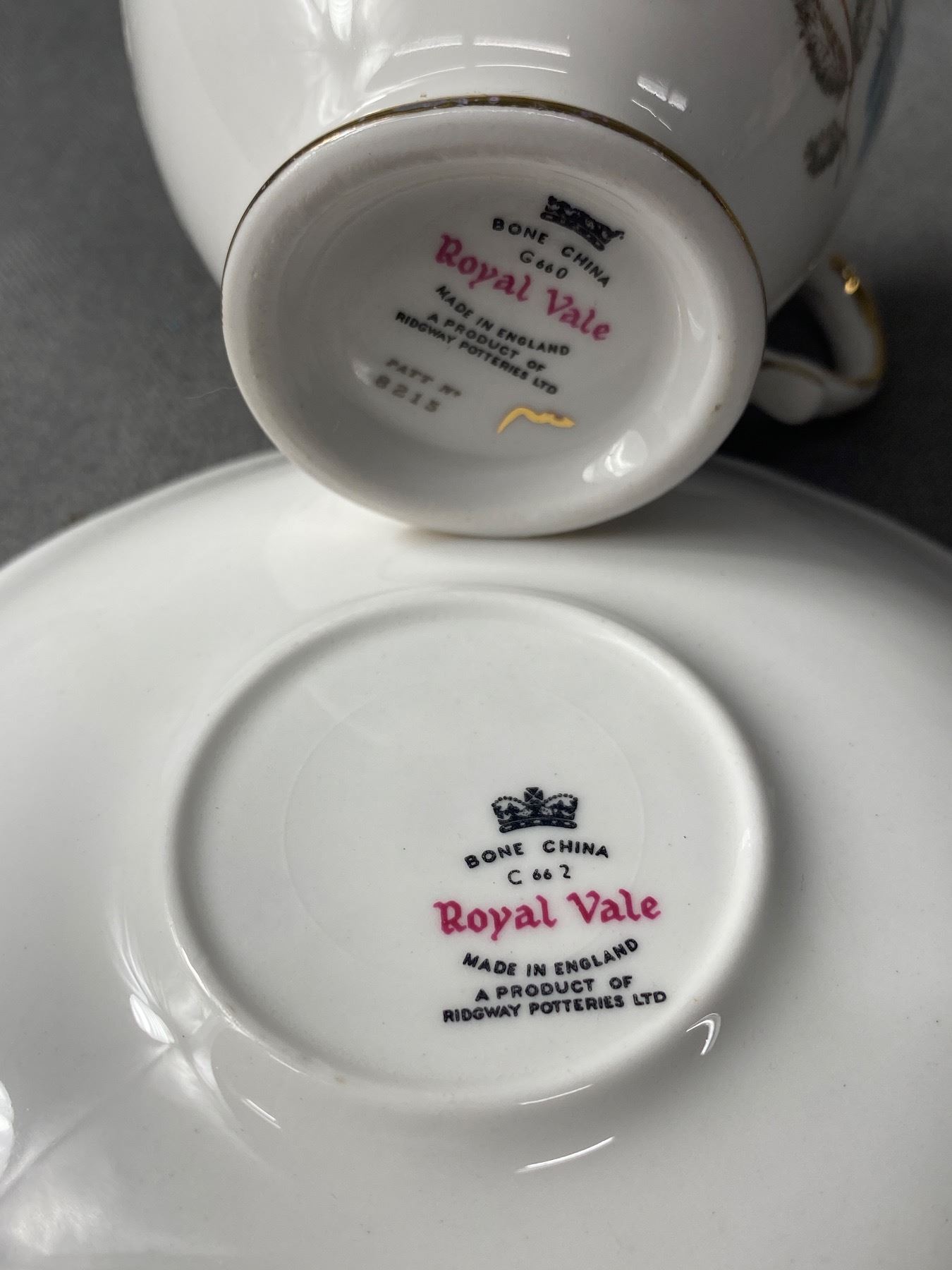 Lot of 8 Bone China Tea Cups, Royal Vale, Queen Anne, Ect