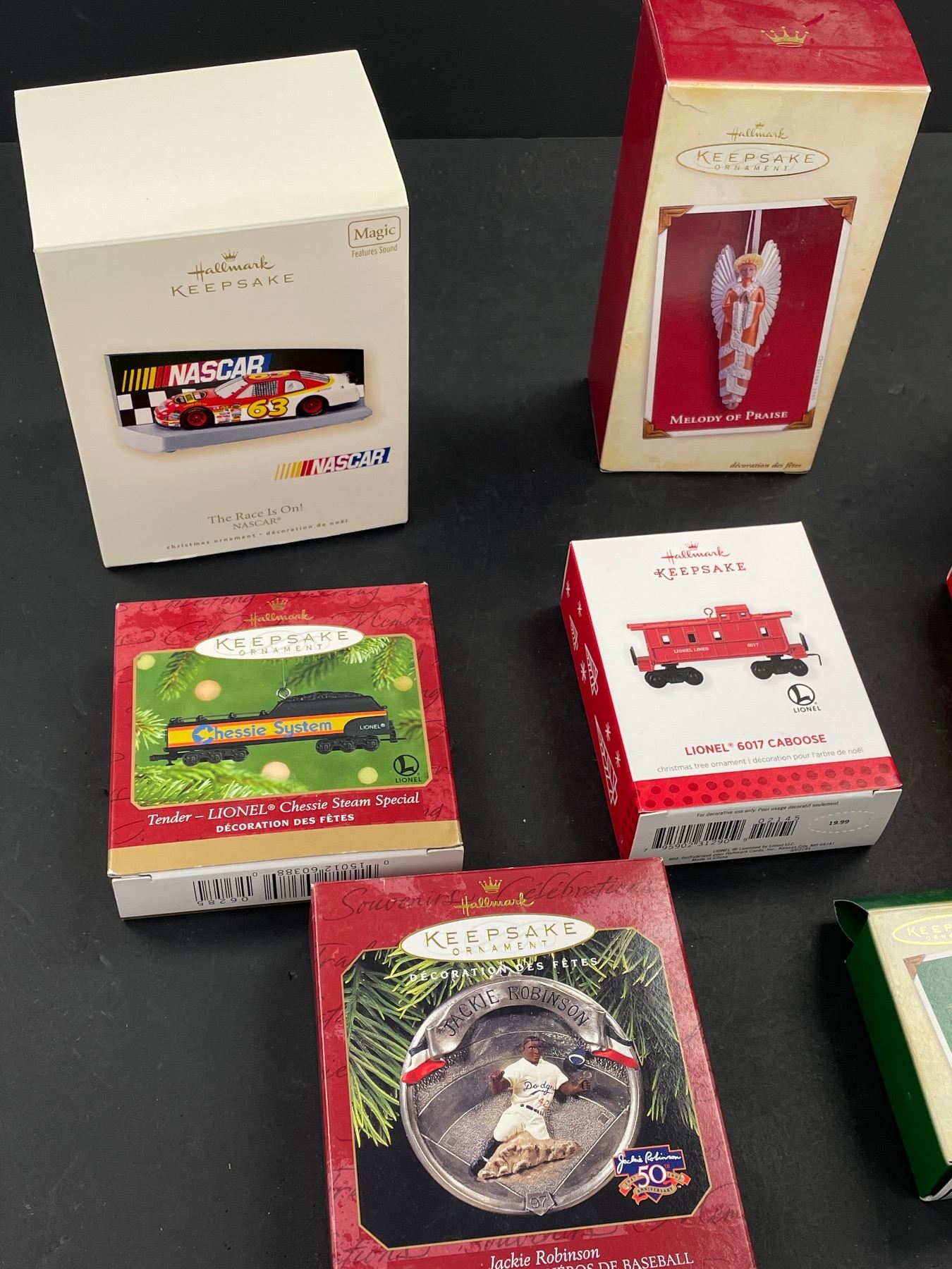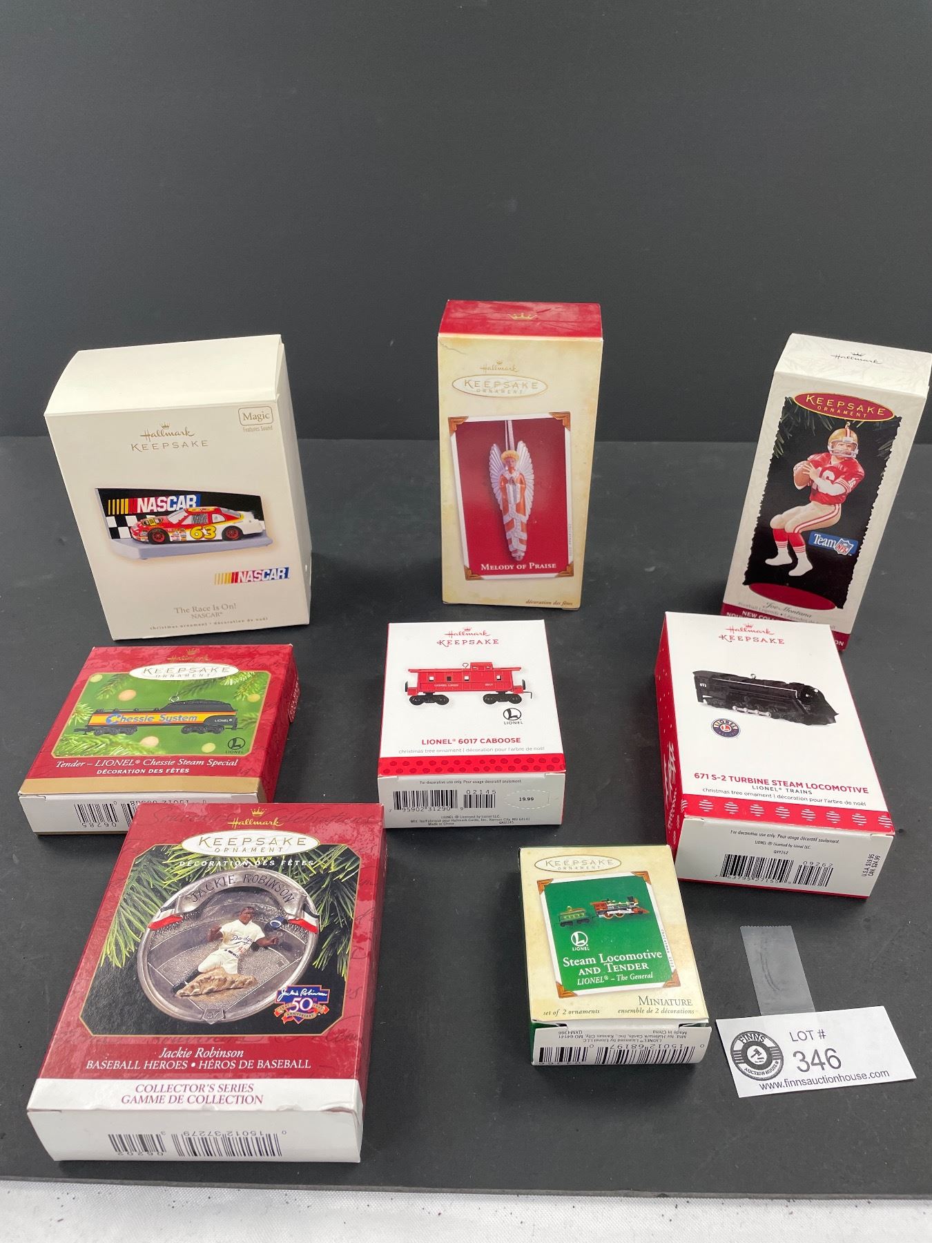 Lot of 8 Hallmark Keepsake Christmas Ornaments Jackie Robinson, Lionel Caboose, et