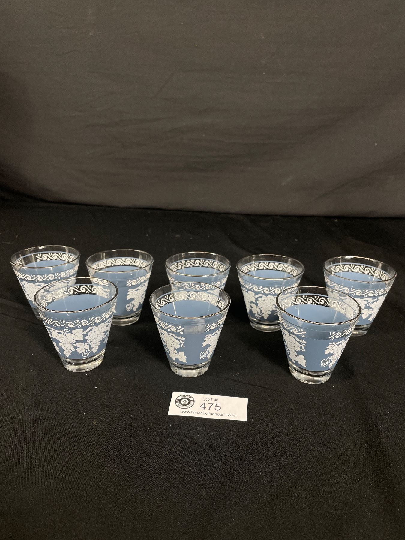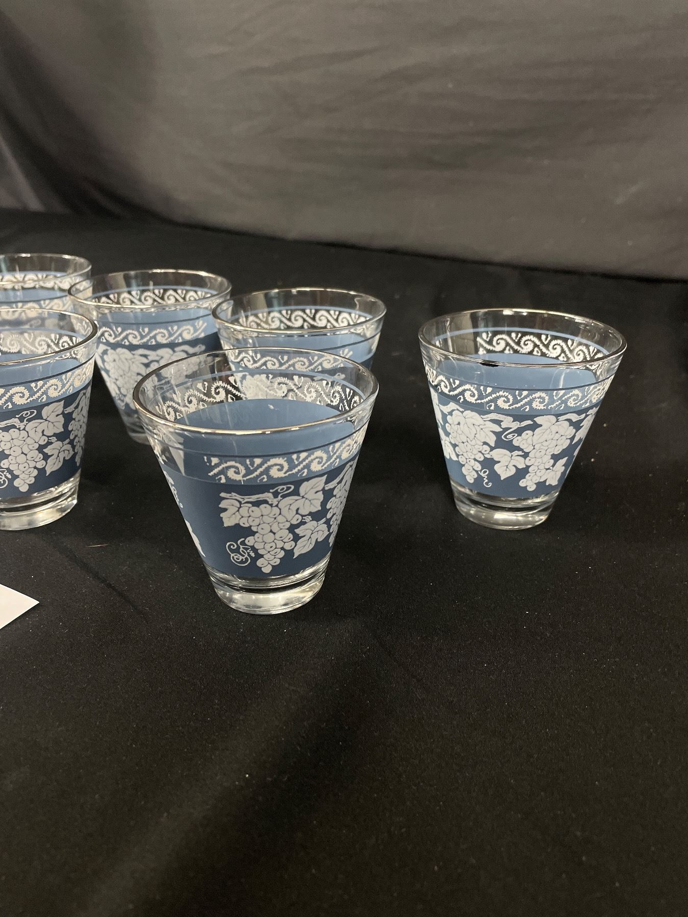 Lot of 8 Vintage AH Blue Grapevine Jasperware/Jeanette Shot Glasses