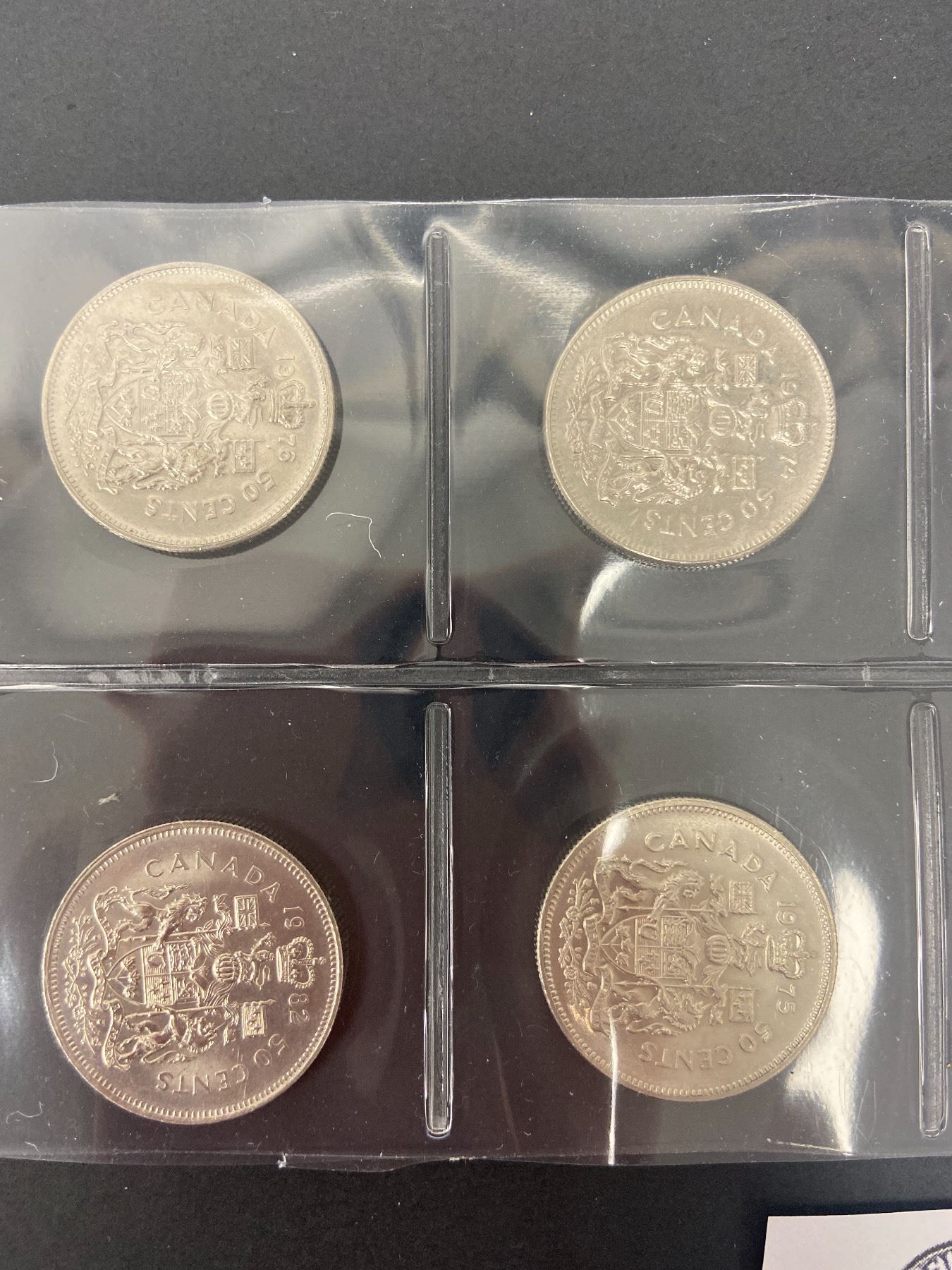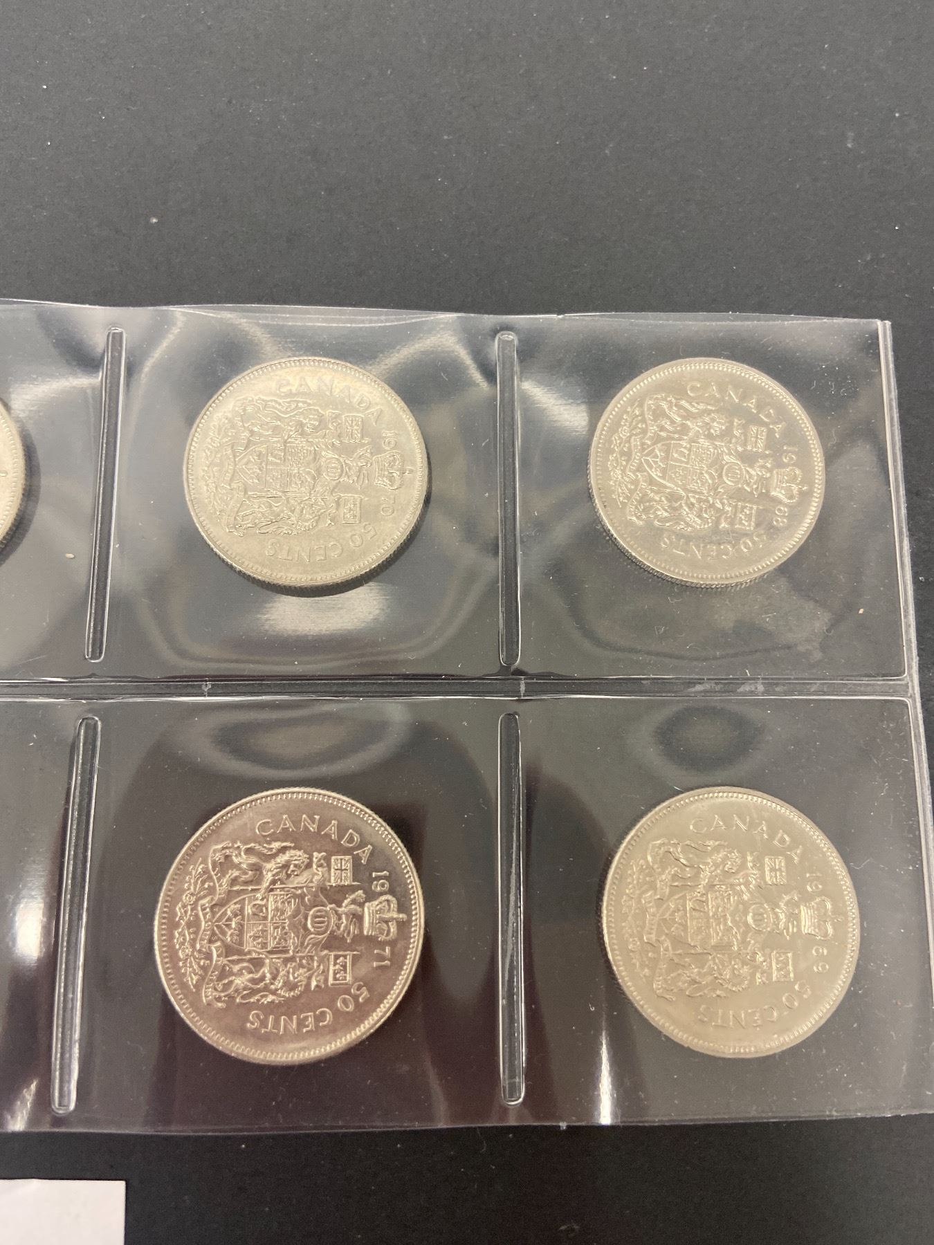 Lot of 9 Canadian 50 Cent Coins in Plastic Sleeve