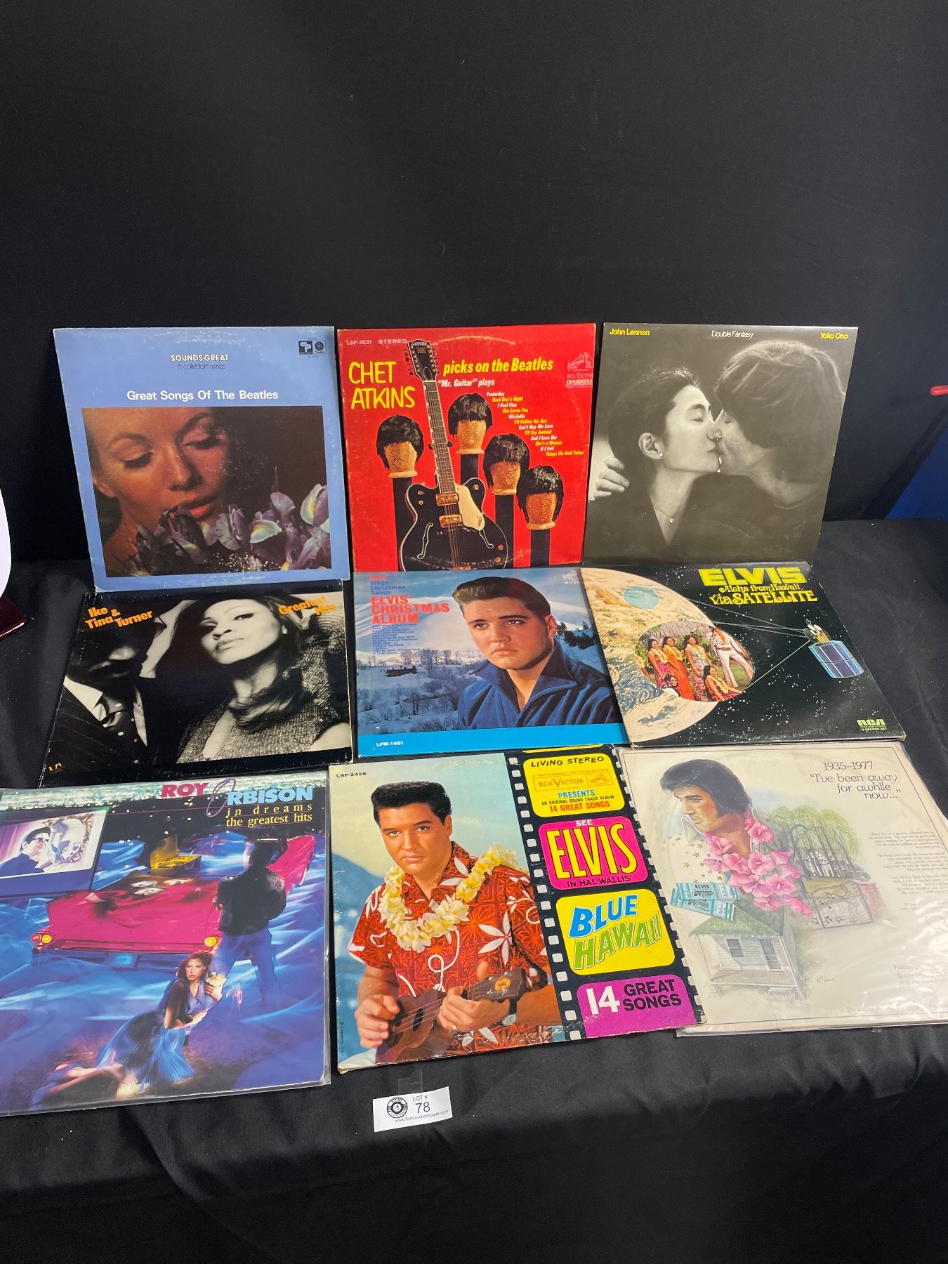 Lot of 9 Vintage Record Albums, Beatles, Elvis Etc