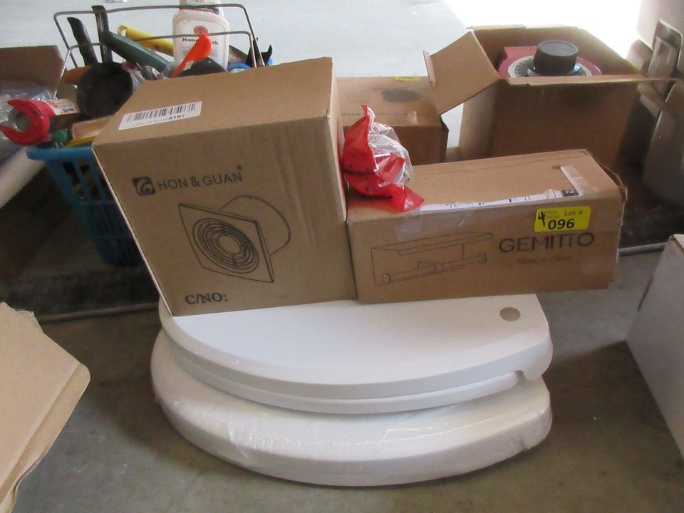 2 Toilet seats, bath shelf, exhaust fan & bidet sprayer