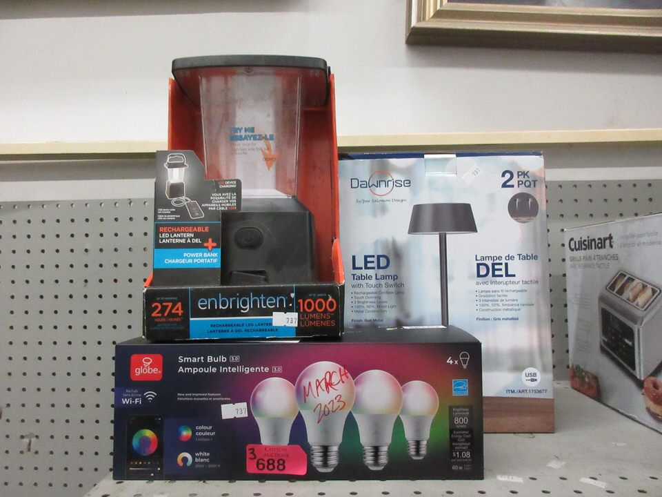 2 Pack of LED touch switch table lamps, box of 4 smart bulbs & enbrighten LED lantern.