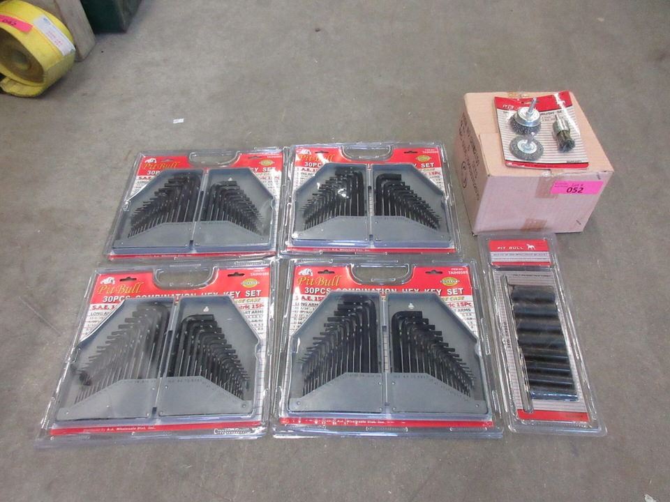 Wire cup brush sets, 9 piece deep socket set & four 30 piece hex key sets.
