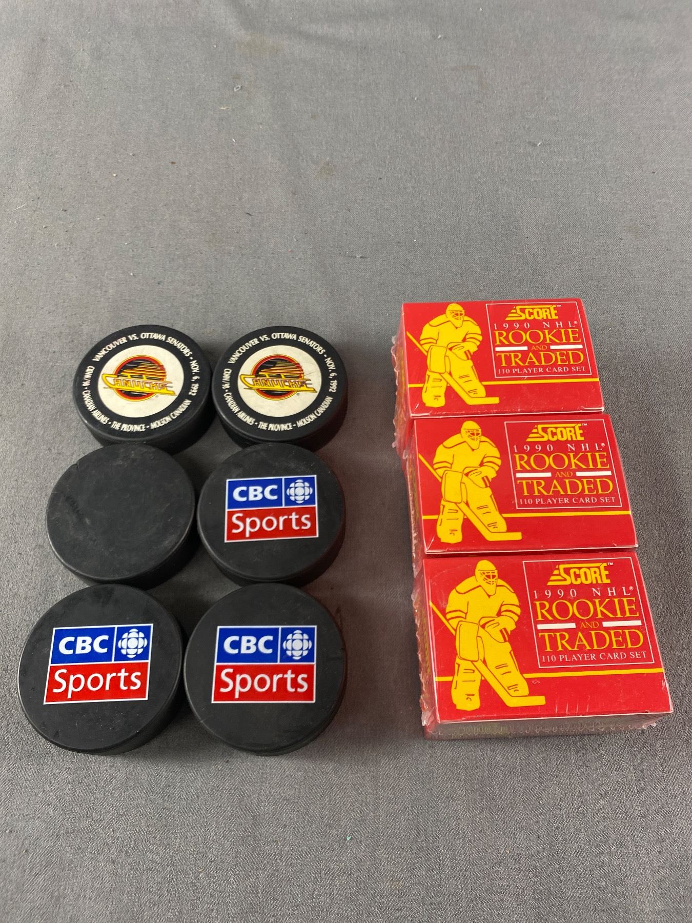 Lot of Boxed Hockey Trading Cards and Pucks