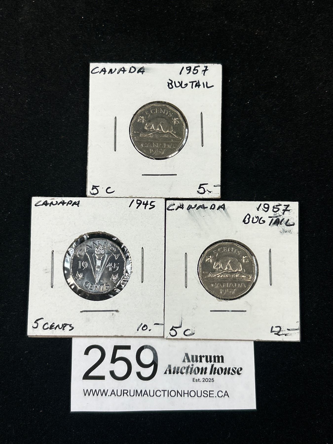 Lot of Canadian Nickels 1945 1953 1954 1957