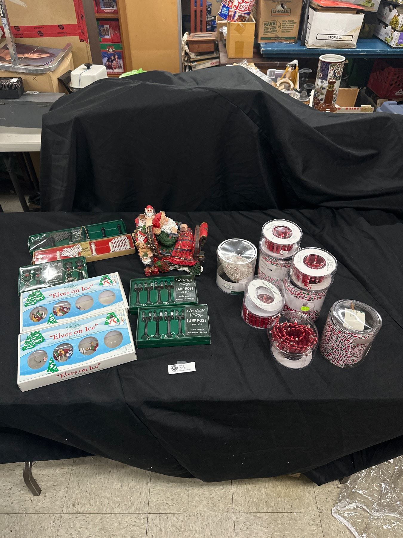 Lot of Christmas Village Décor & More - Light Up Lamp Posts, Fencing, Elves On Ice & More