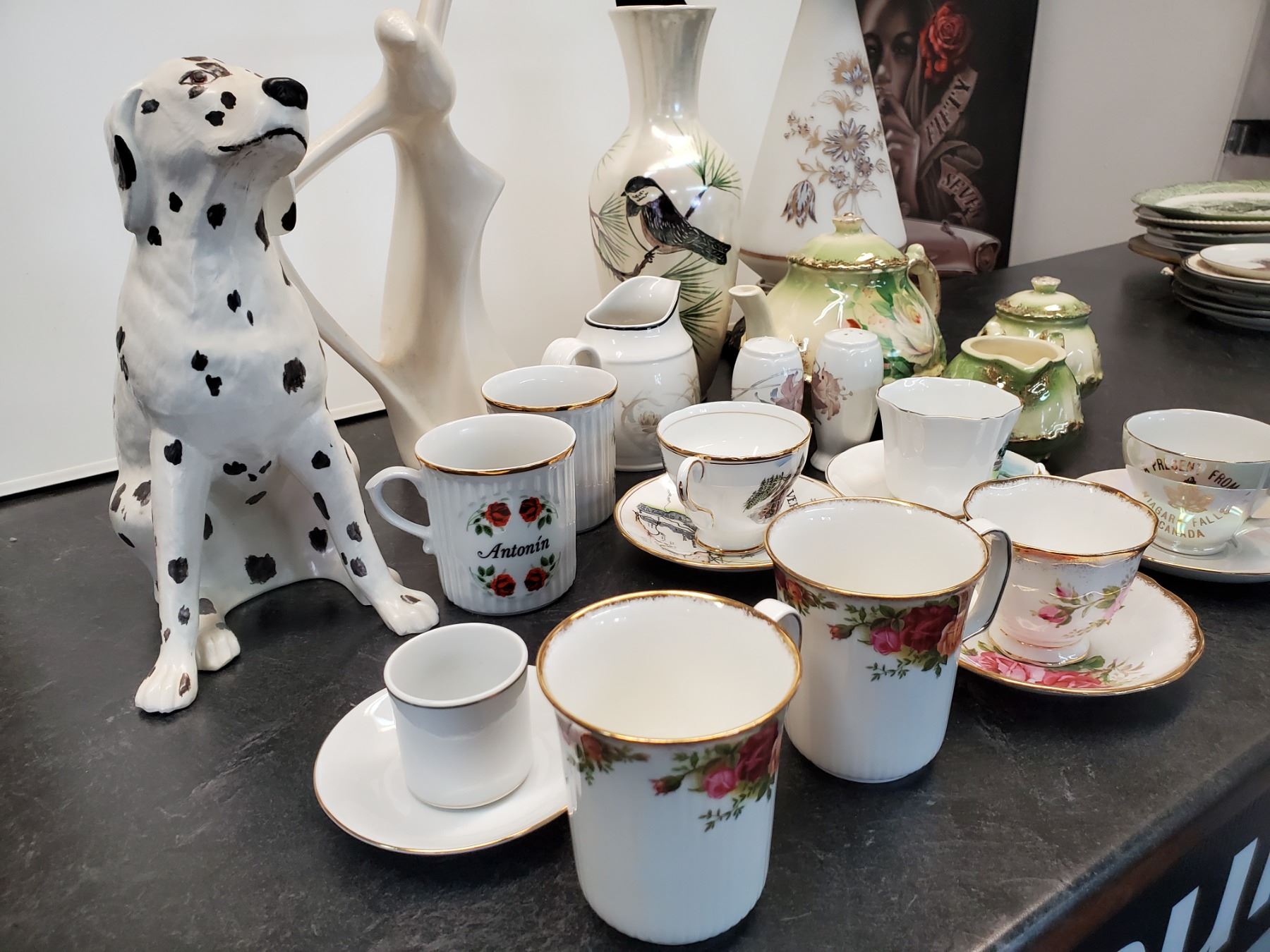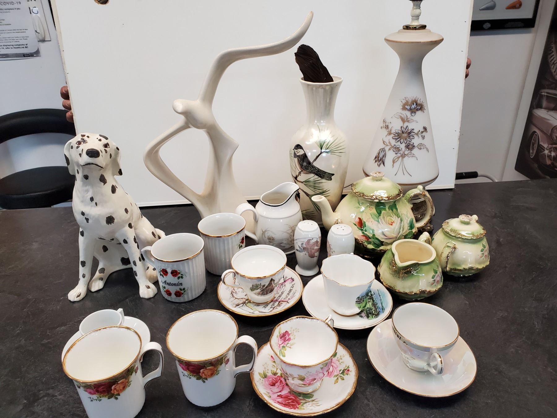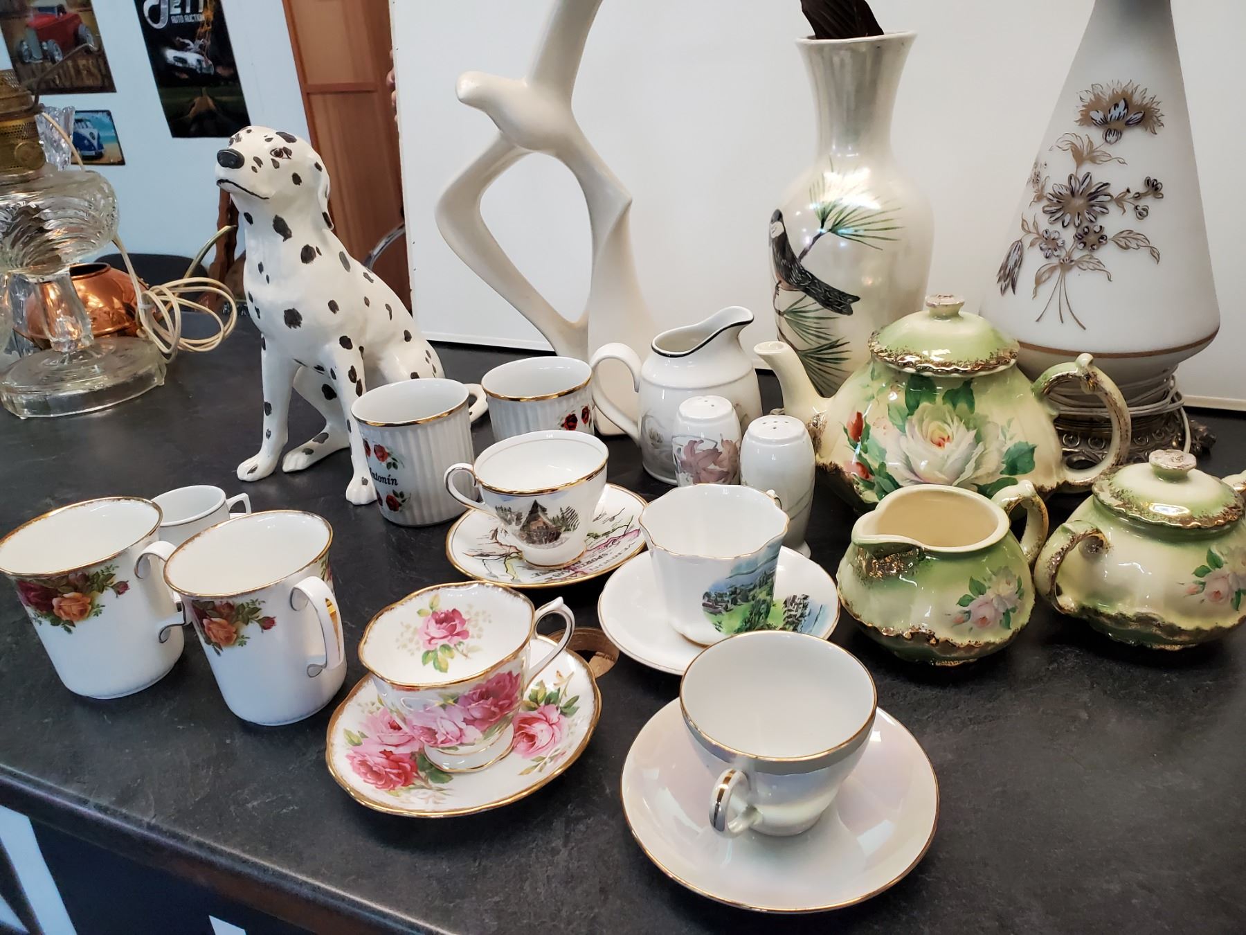 Lot of Coffee & tea cups (Inc Old Country Rose) & Ceramic display Items - 17% Buyer Fee. Payment Processed through Live Auction World ( Visa or Master Card ) pick up Saturday, or Tuesday