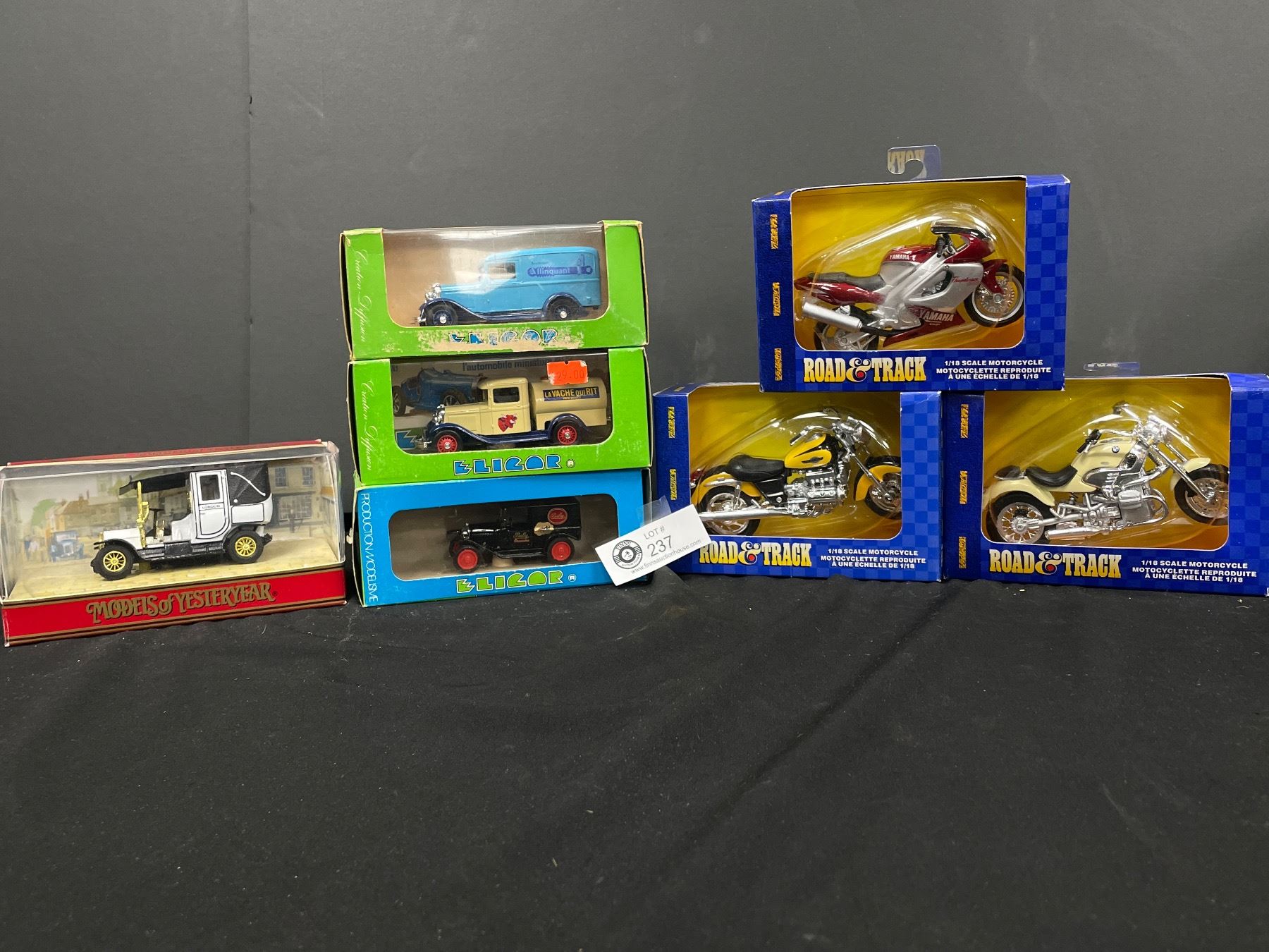 Lot of Die Cast Trucks and Motorcycles In Original Boxes.