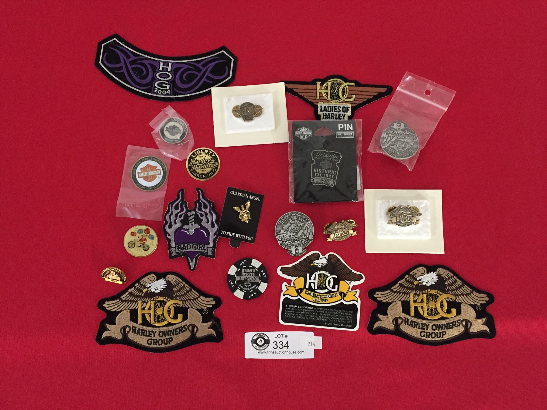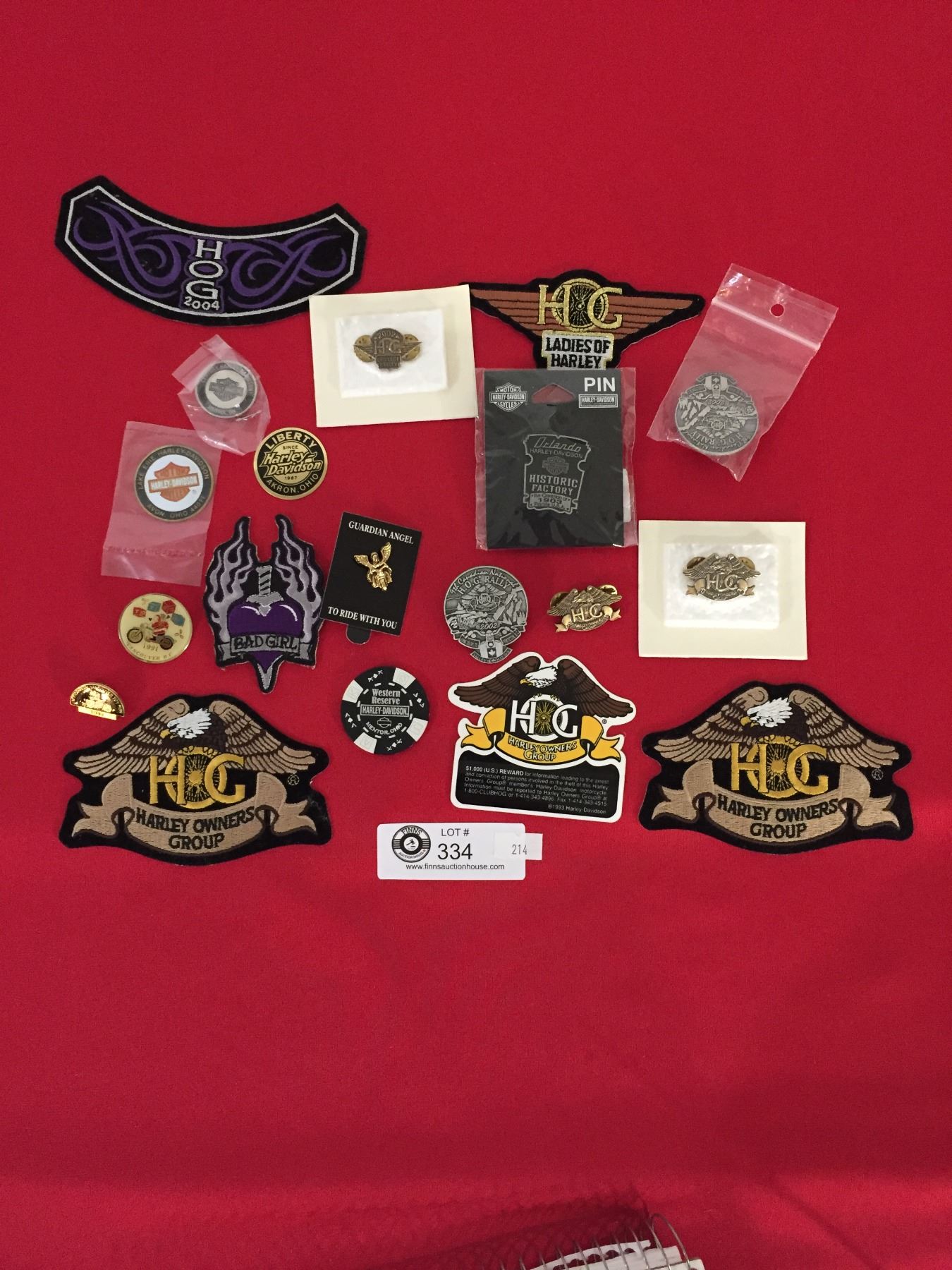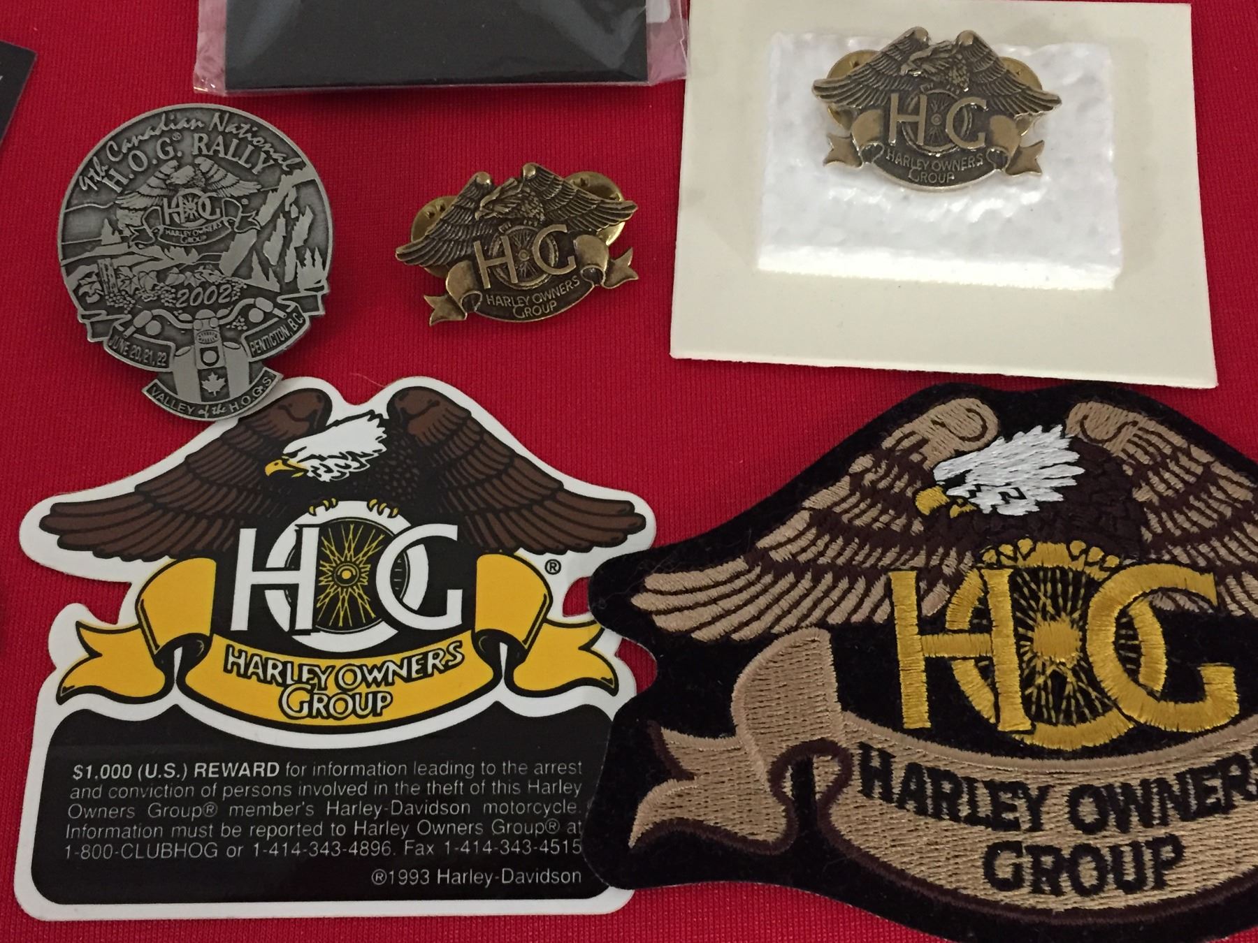 Lot of Harley Davidson Pins,Patches, Stickers and a Casino Chip Ohio