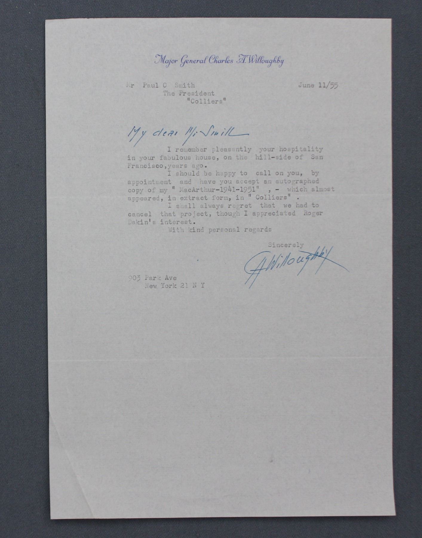 Lot of Letters incl. Signed Charles A. Willoughby, Lenore Coffee, James H. Duff, etc.