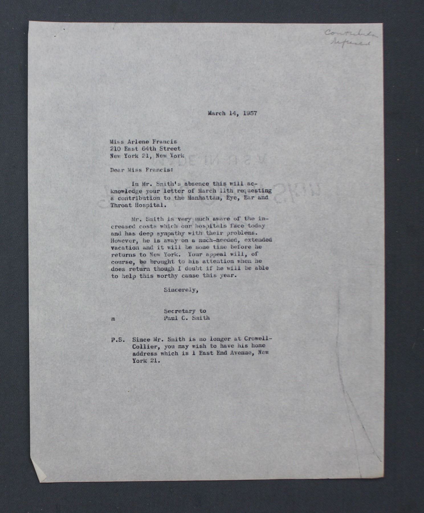 The Americana, letters, and ephemera listed in this auction come directly from the estate of the nephew of the late Paul C. Smith (1908-1976). They have never before been offered to the public.