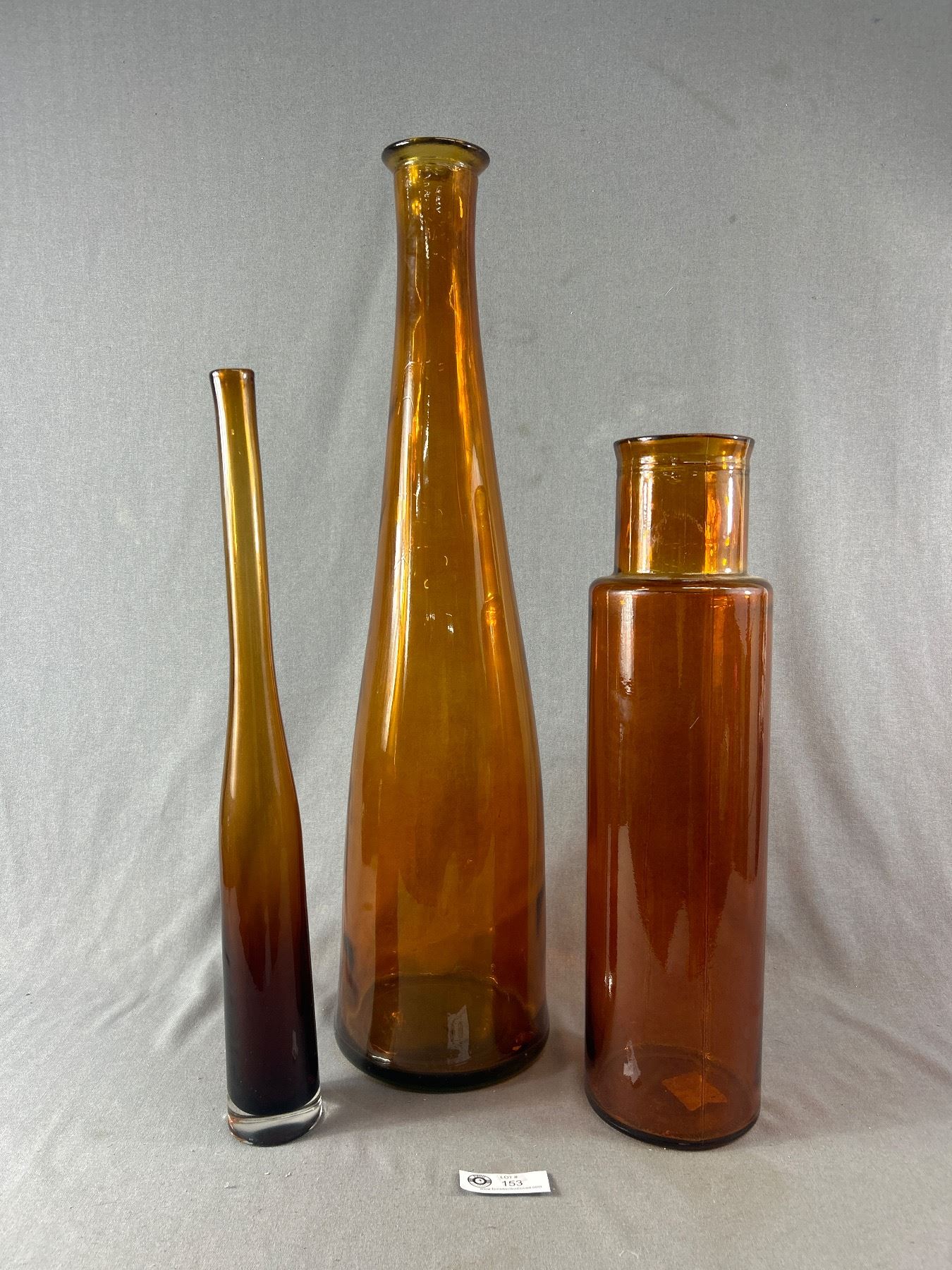 Lot of Lovely Amber Glass Bottles Largest one Measures Approx 30.5" NO SHIPPING