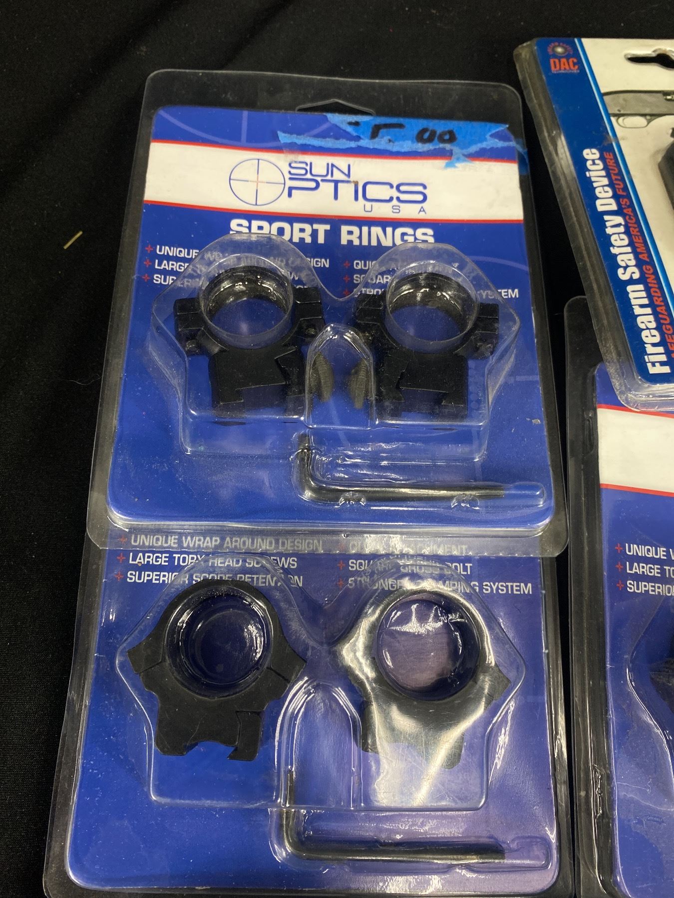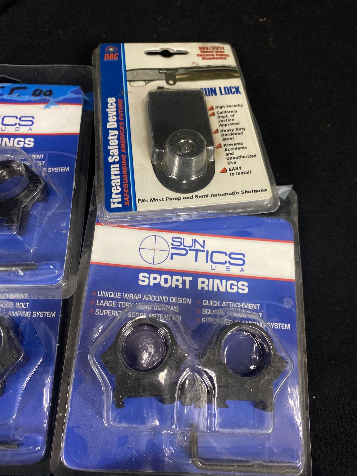 Lot of New Sun Optics Sports Rings and Trigger Lock for Firearms