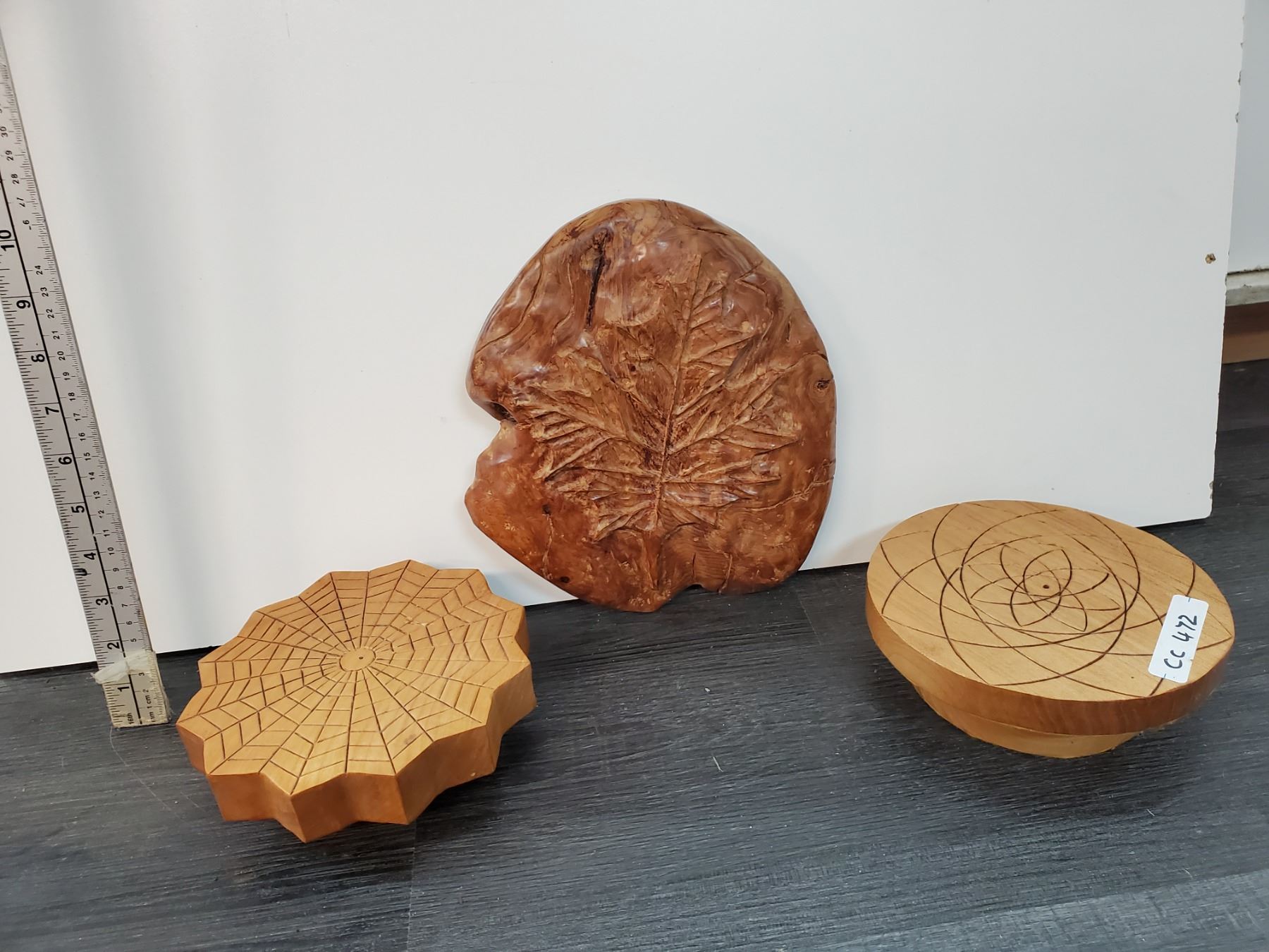 World Famous Signed Paul Bourbeau Carving -- Lot of Three Carving Maple Leaf & Two Lazy Susan -- -- 17% Buyer Fee. Payment Processed through Live Auction World Sdaturday @ 11:15 ( Visa or Master Card ) pick up Saturday Before 3:00, or Tuesday 9:30 till 5:04