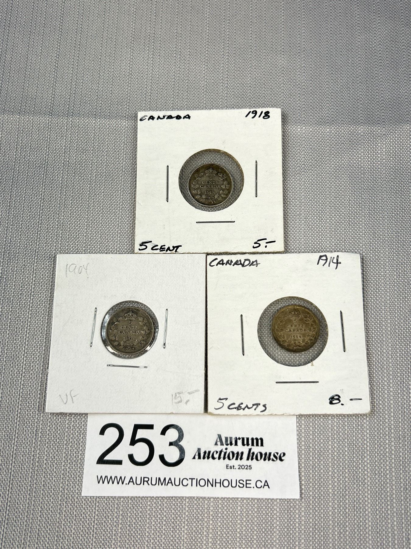 Lot of Vintage Canadian Nickels 1904, 1914, 1918 Silver Content