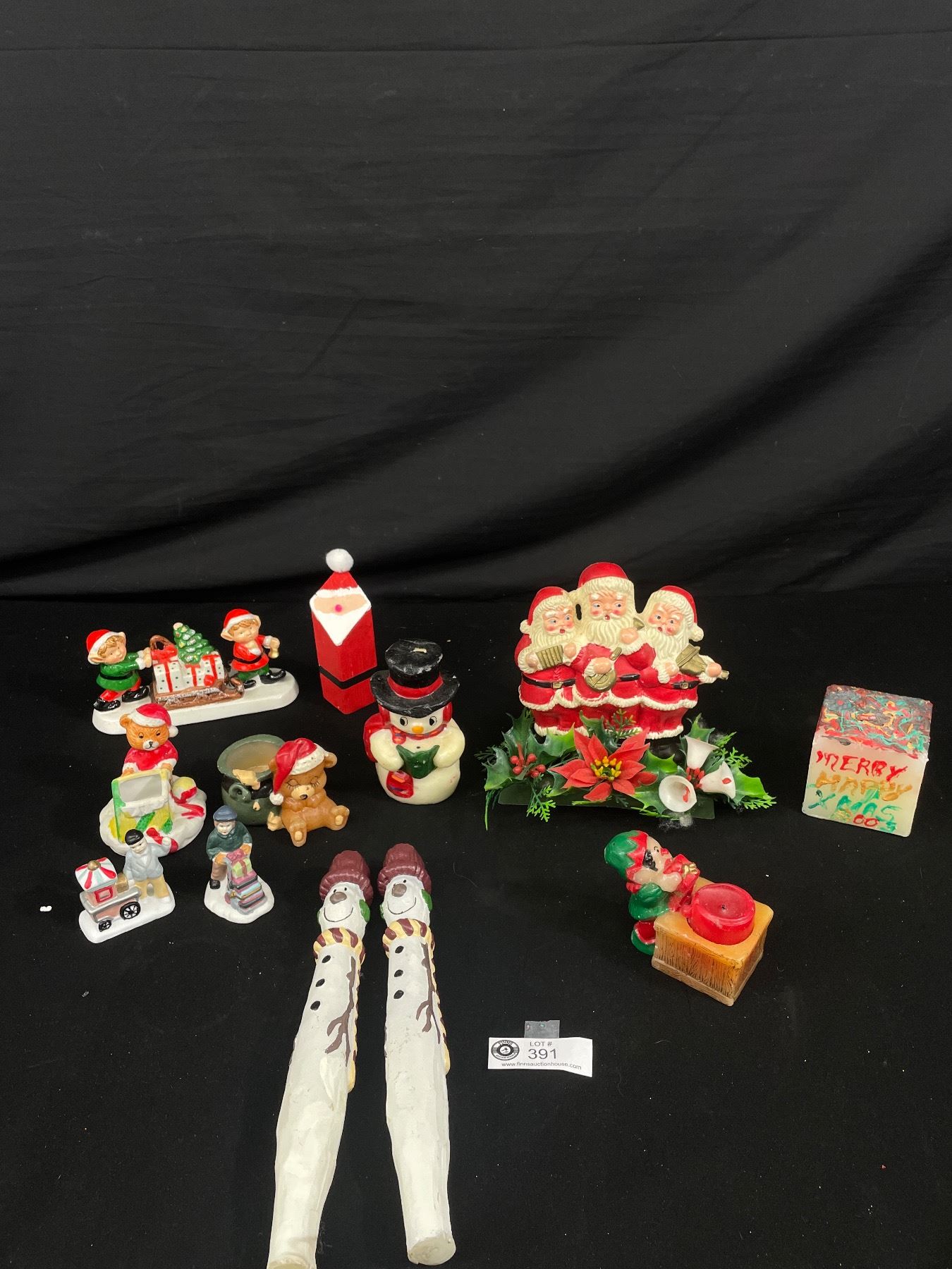 Lot of Vintage Christmas Décor Candles, Wax Candleholders, Santa's Etc