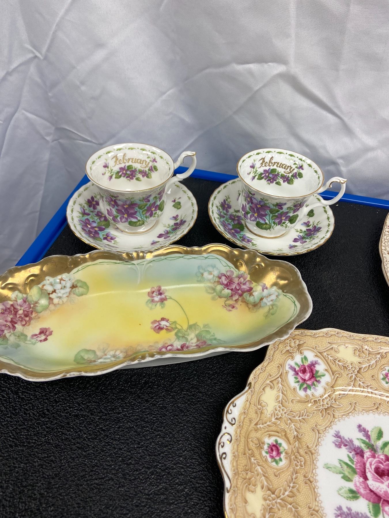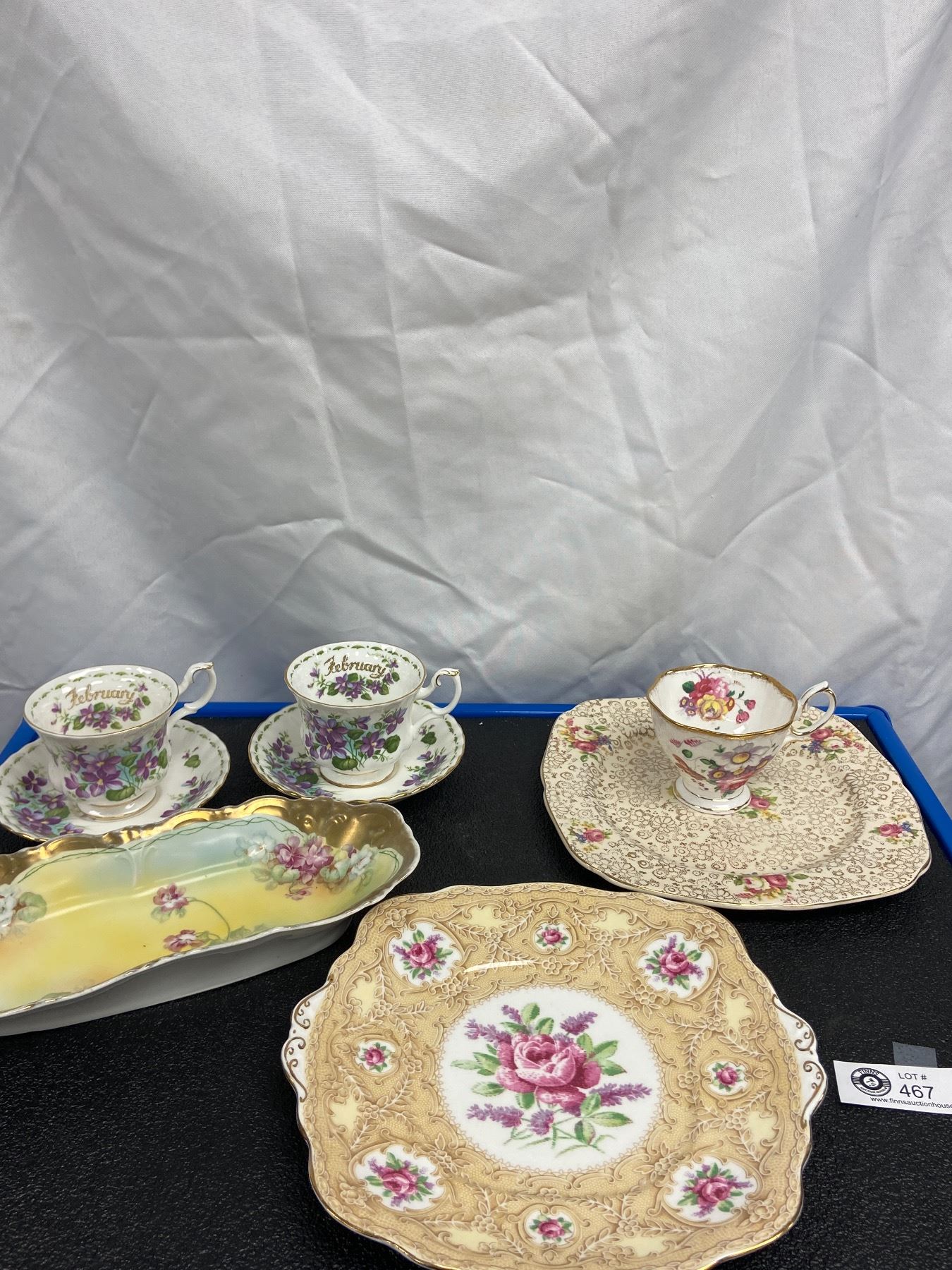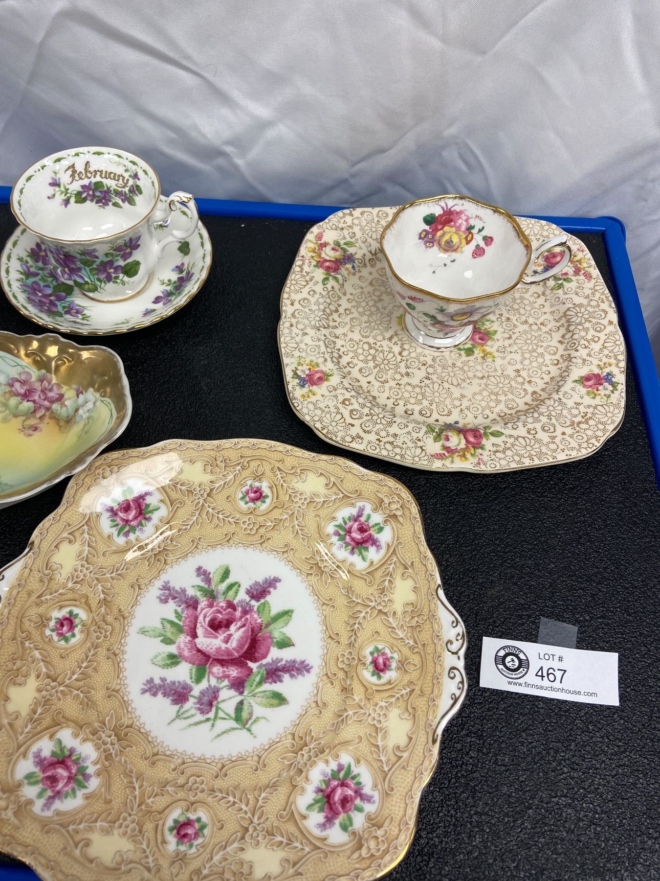 Lot of Vintage Dishes and Tea Cups " Hydrangea" Dish and "February" Tea Cups