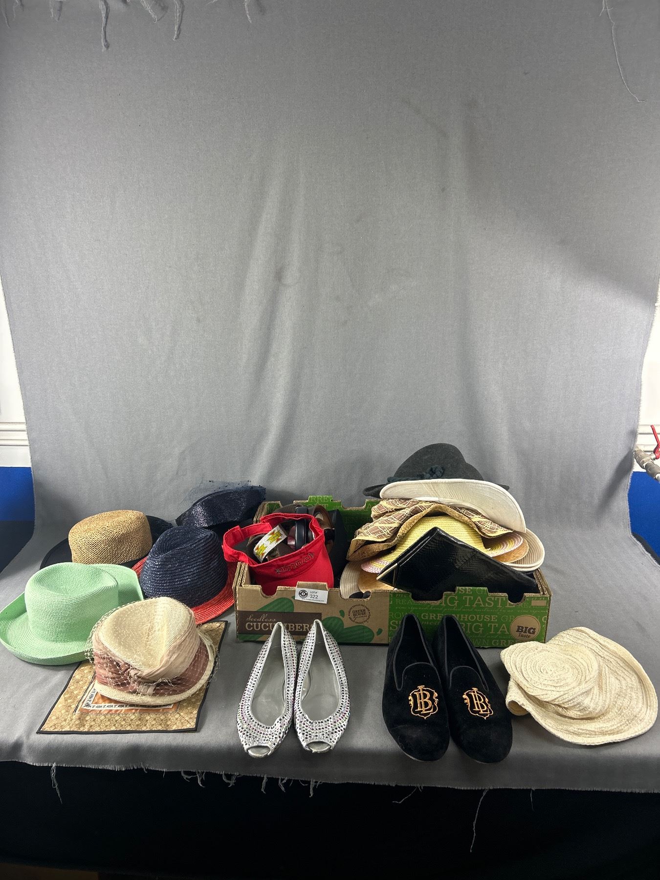 Lot of Vintage Hats, Shoes Sunvisors Etc